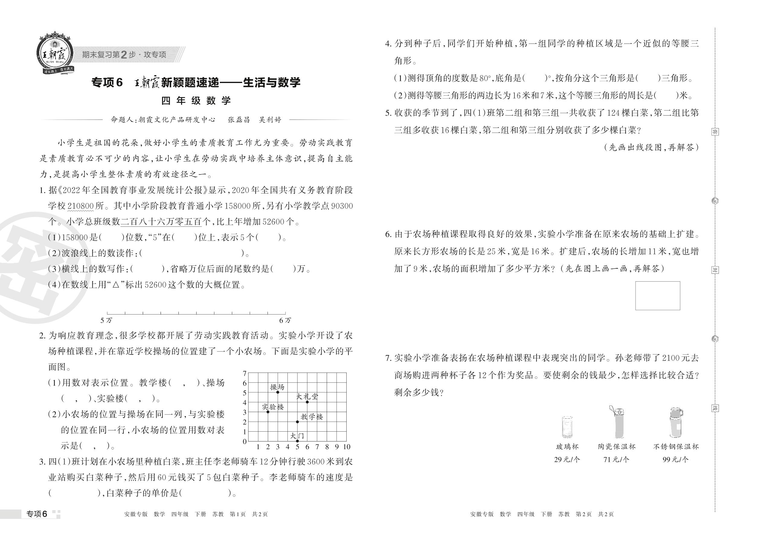 王朝霞期末专项卷——新颖题速递:生活与数学四年级下册数学(苏教版)【6】