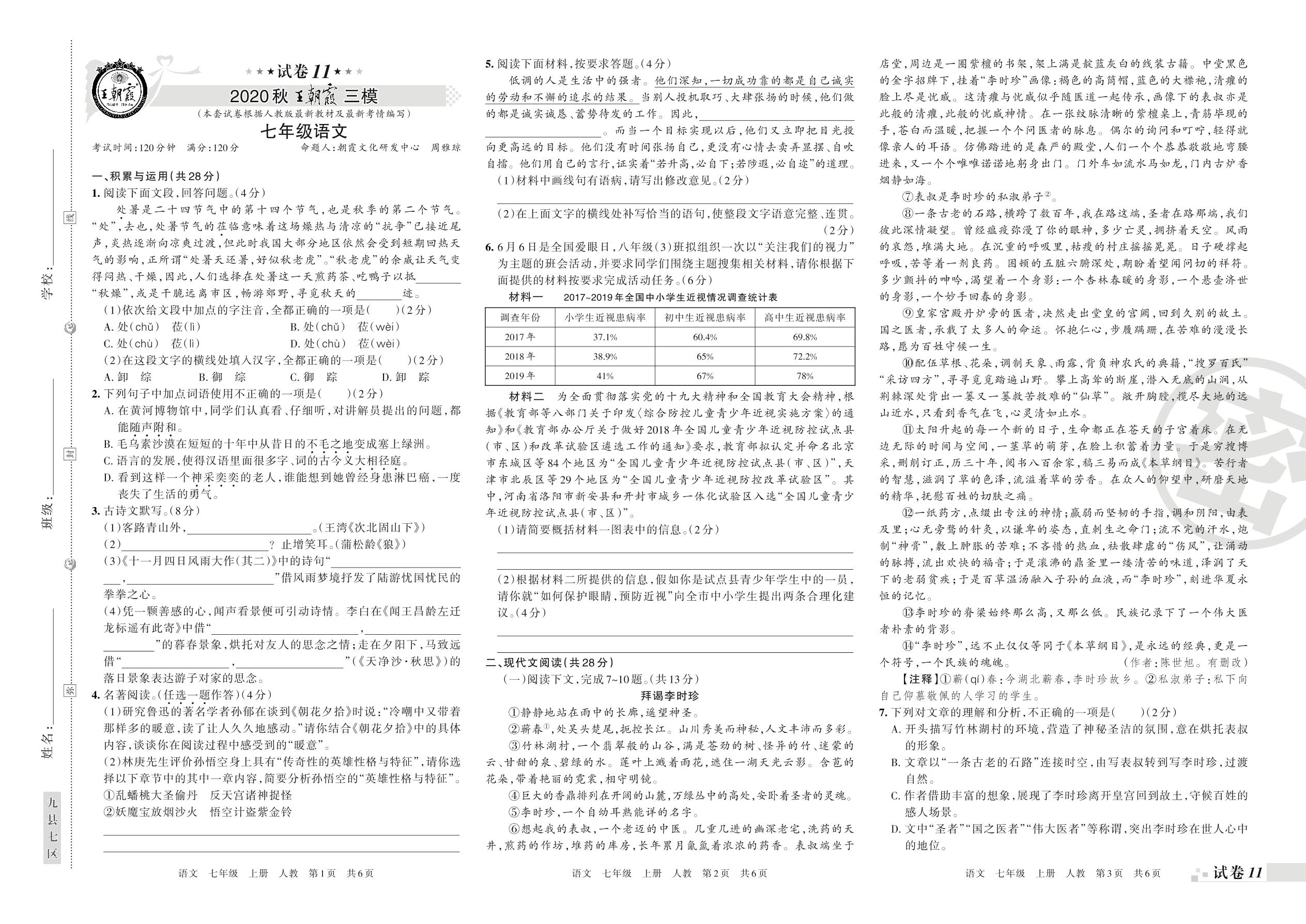 王朝霞期末模拟卷七年级上册语文(人教版)_R21080214120【11】