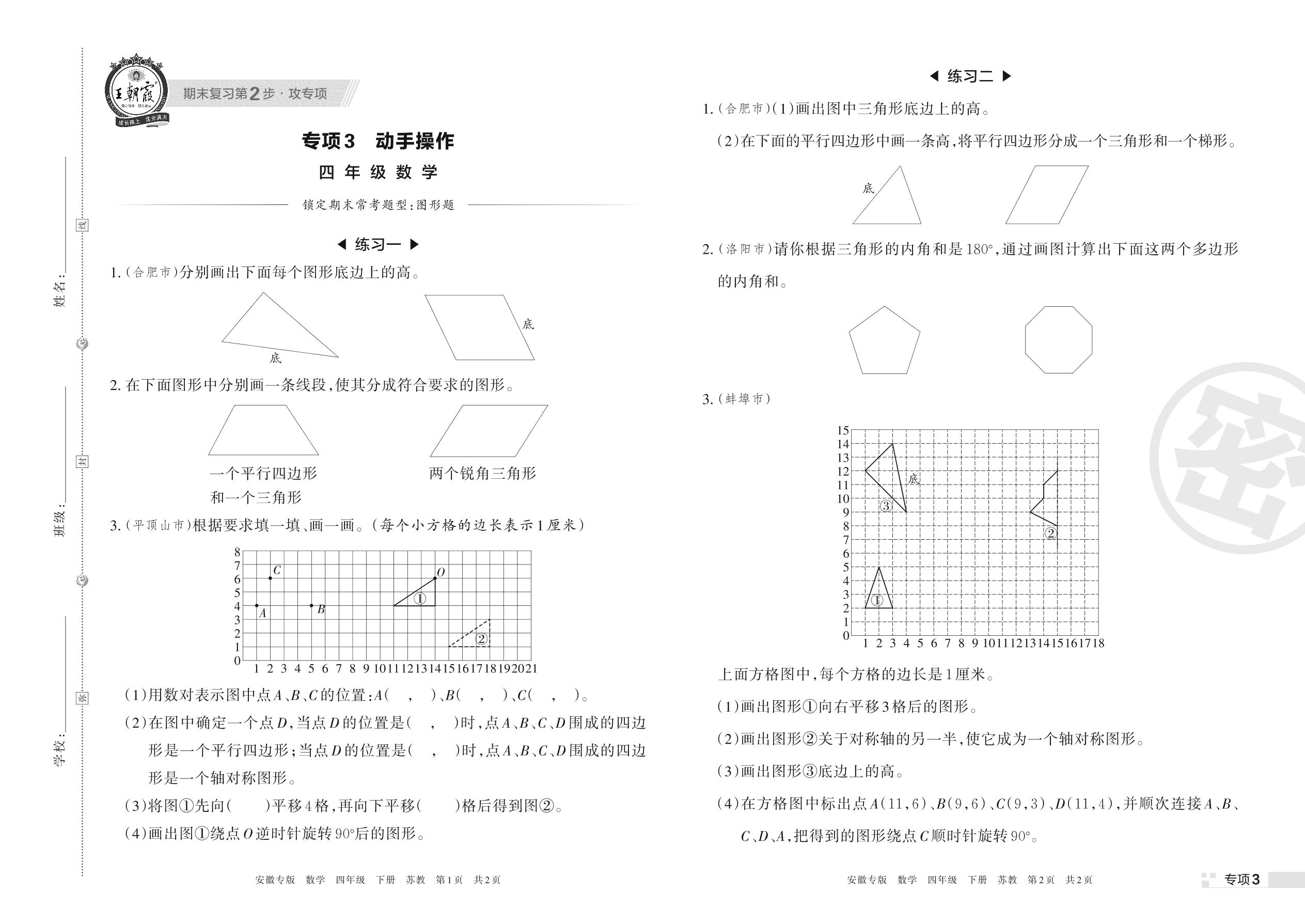 王朝霞期末专项卷——动手操作四年级下册数学(苏教版)【3】