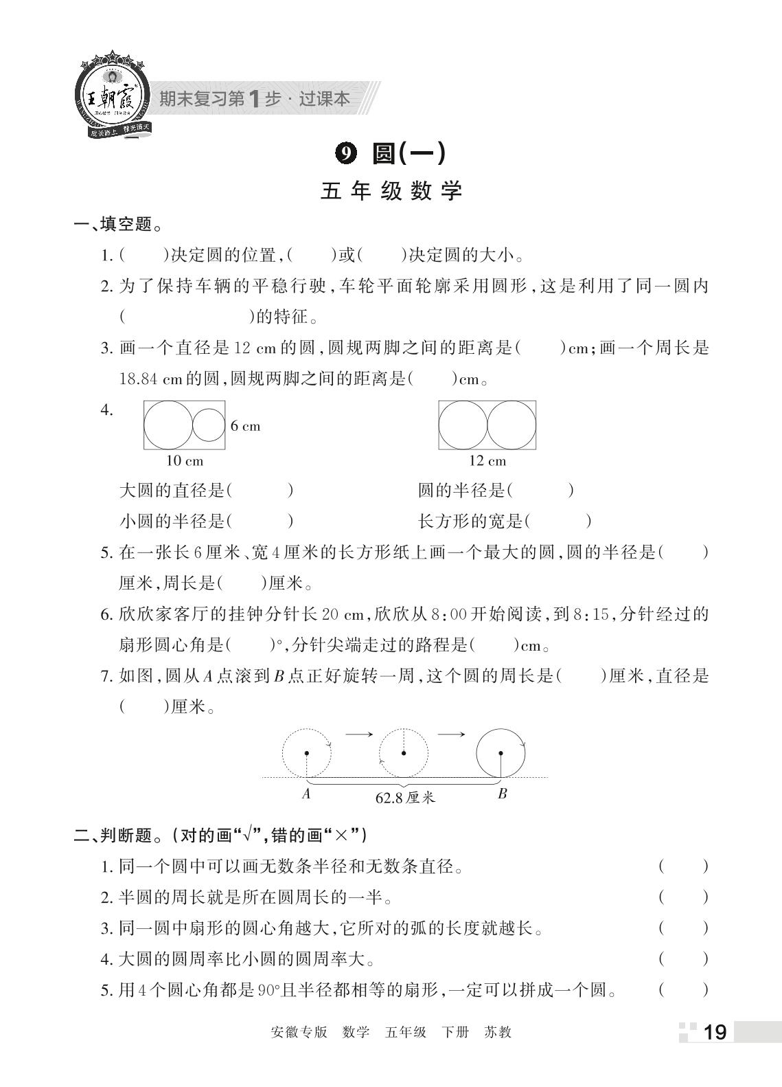 王朝霞期末过课本——9 圆(一)五年级下册数学(苏教版)