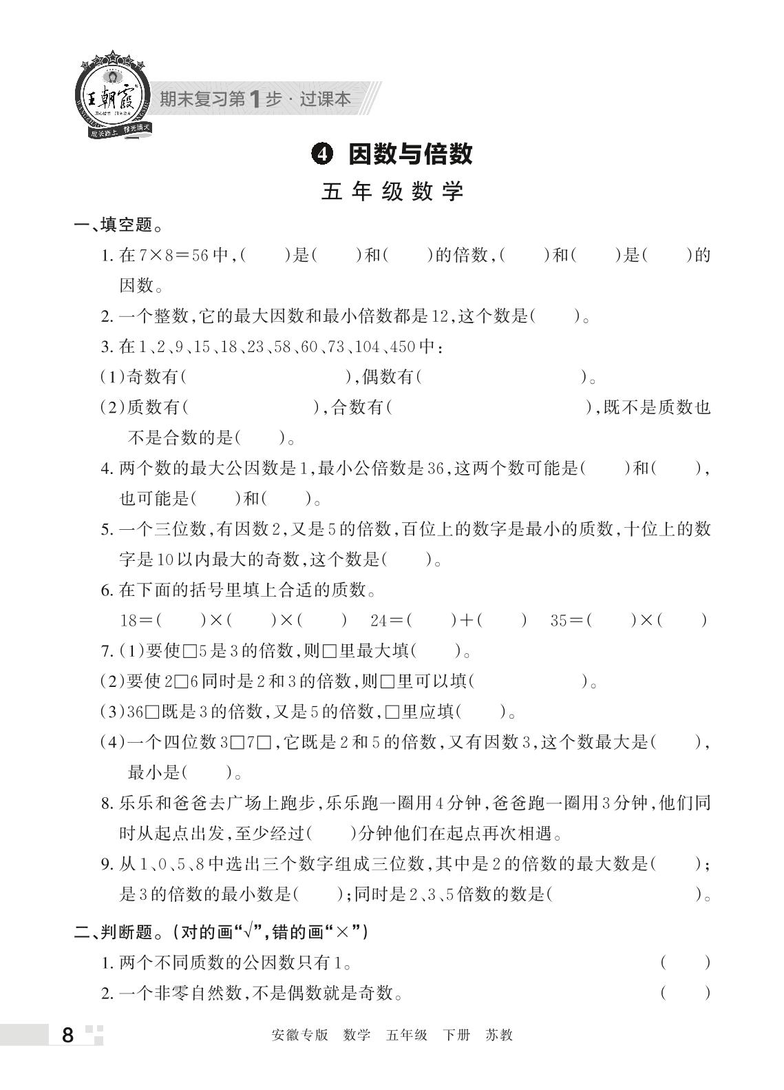 王朝霞期末过课本——4 因数与倍数五年级下册数学(苏教版)