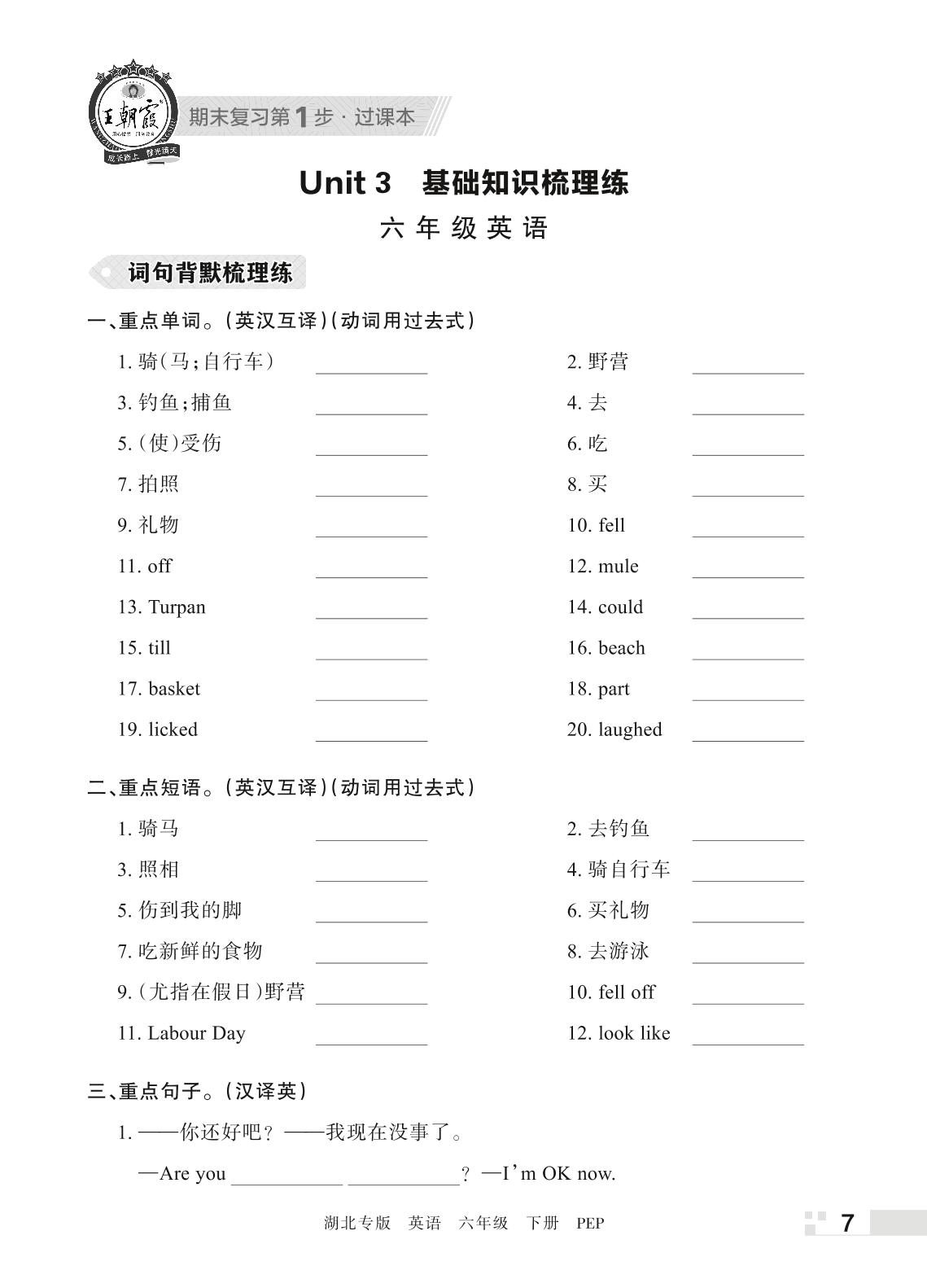 王朝霞期末过课本——Unit 3 基础知识梳理练六年级下册英语(PEP版)_R220328170733943