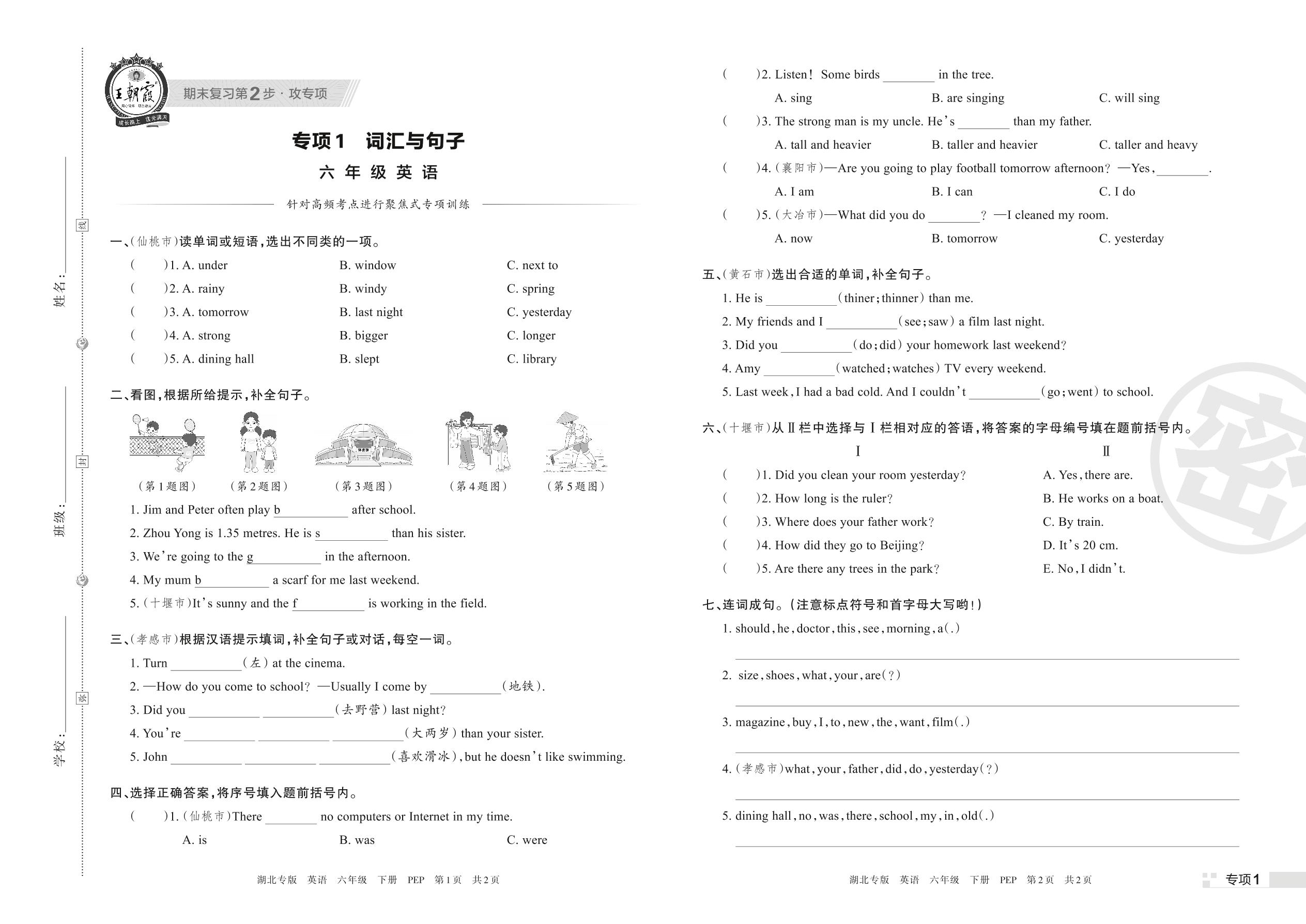 王朝霞期末专项卷——词汇与句子六年级下册英语(PEP版)_R220328170733461【1】