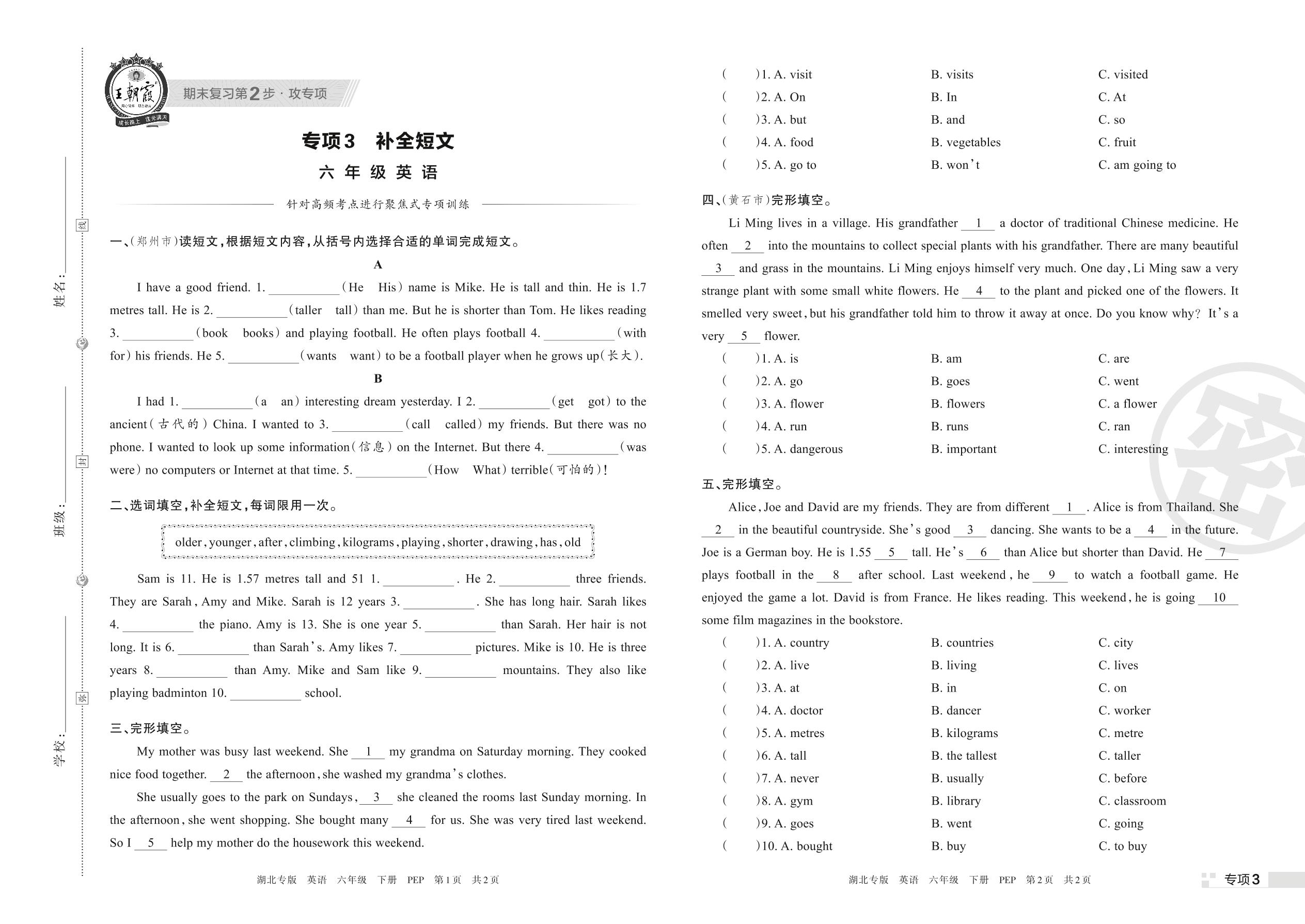 王朝霞期末专项卷——补全短文六年级下册英语(PEP版)_R220328170733612【3】