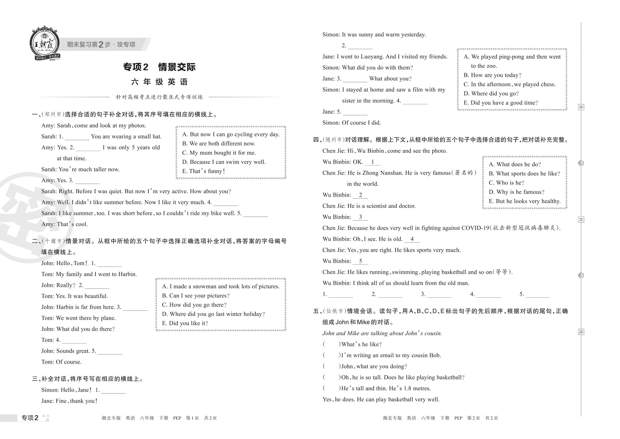 王朝霞期末专项卷——情景交际六年级下册英语(PEP版)_R220328170733105【2】