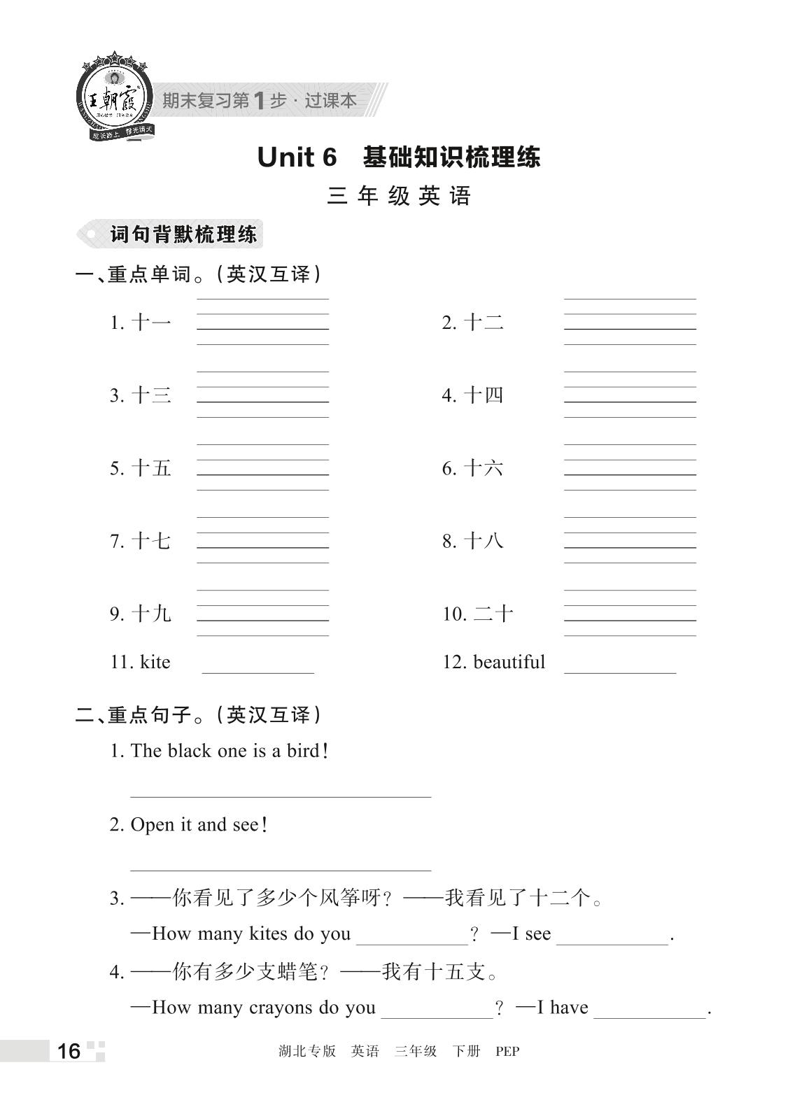 王朝霞期末过课本——Unit 6 基础知识梳理练三年级下册英语(PEP版)_R220328171545184