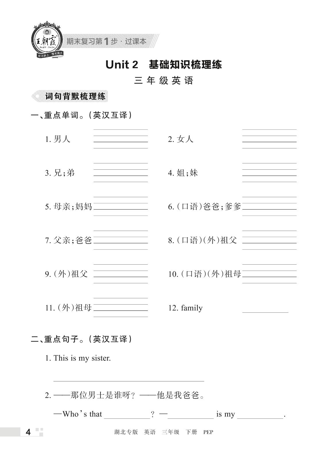 王朝霞期末过课本——Unit 2 基础知识梳理练三年级下册英语(PEP版)_R220328171545639