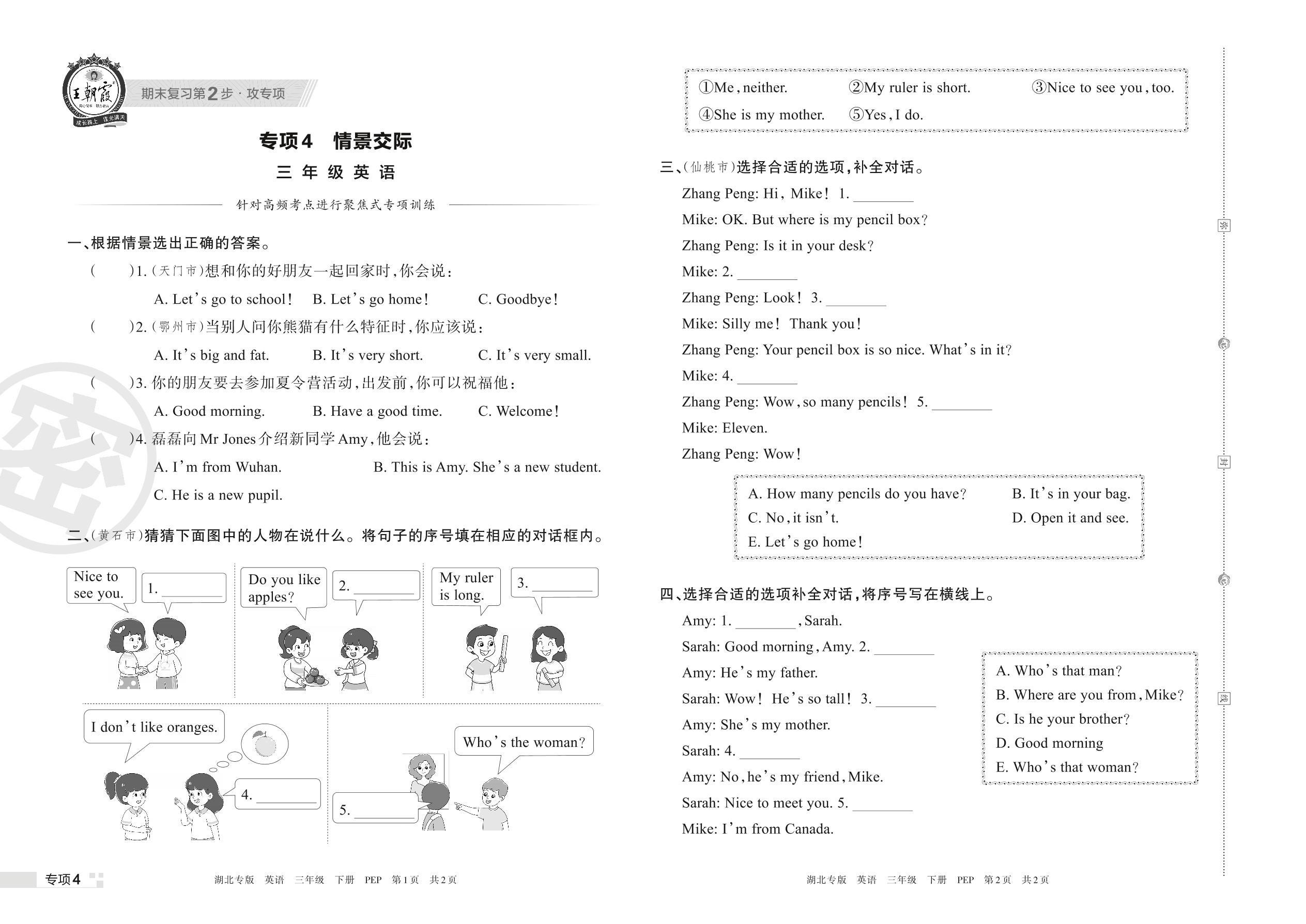 王朝霞期末专项卷——情景交际三年级下册英语(PEP版)_R220328171546203【4】
