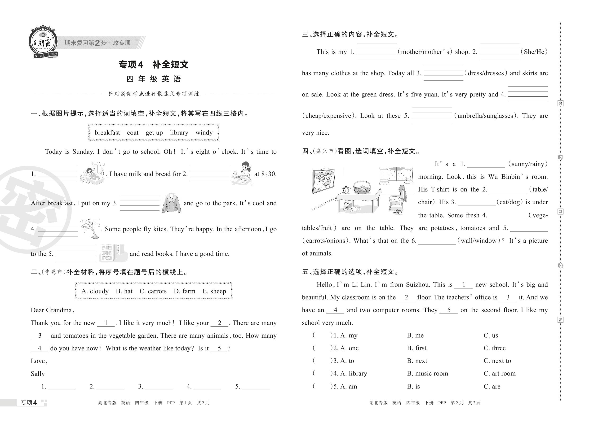 王朝霞期末专项卷——补全短文四年级下册英语(PEP版)【4】