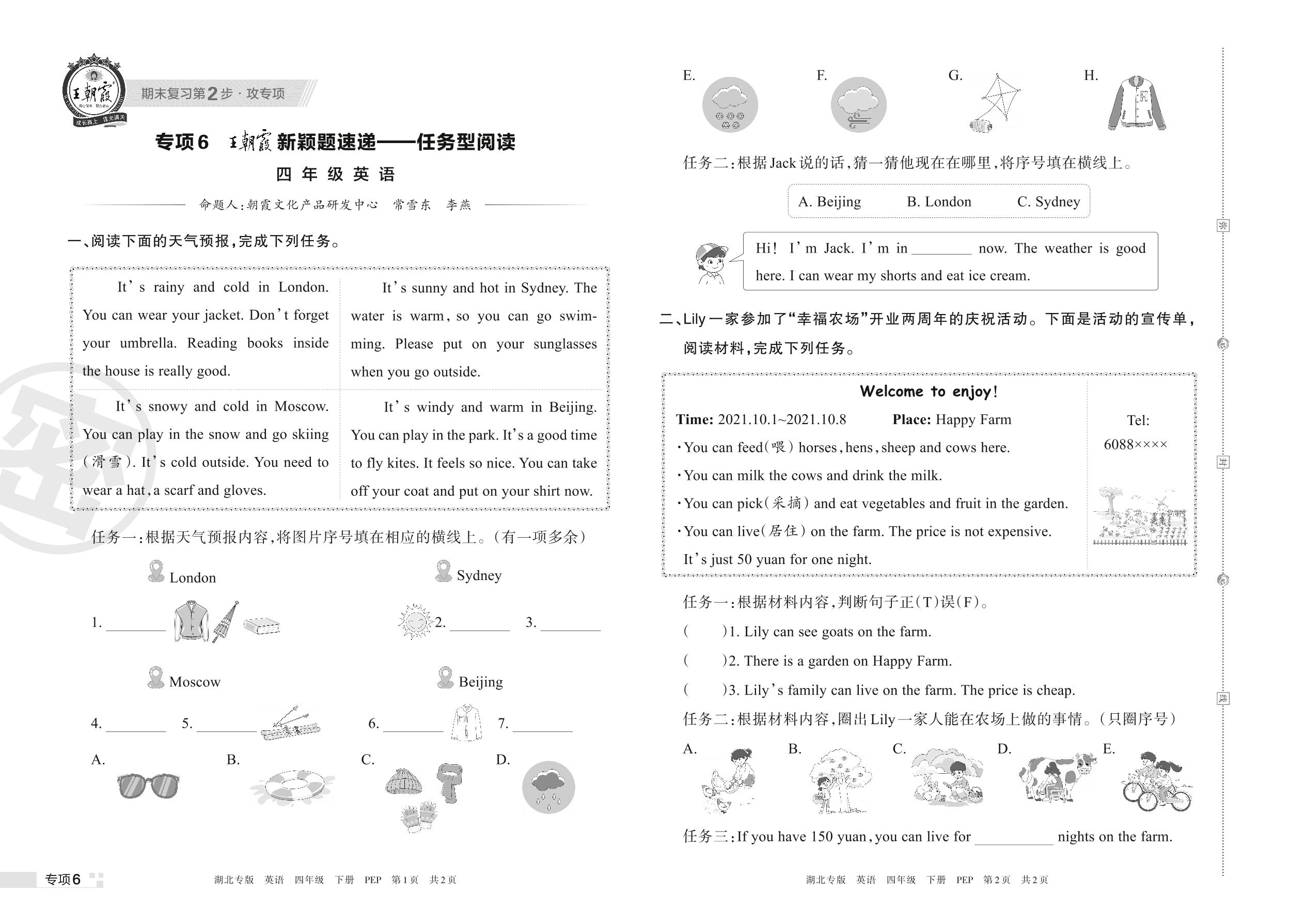 王朝霞期末专项卷——新颖题速递:任务型阅读四年级下册英语(PEP版)_R220328172453569【6】