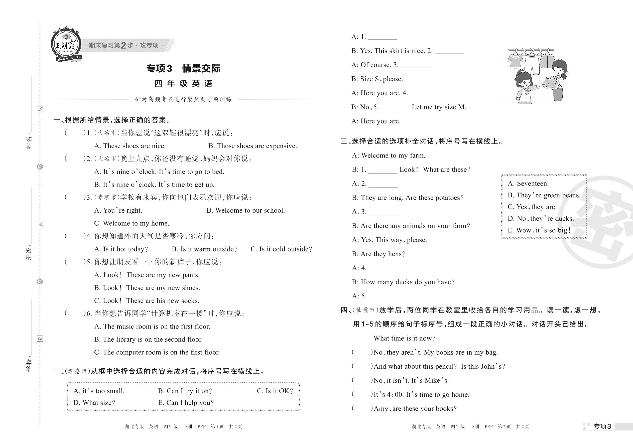 王朝霞期末专项卷——情景交际四年级下册英语(PEP版)【3】