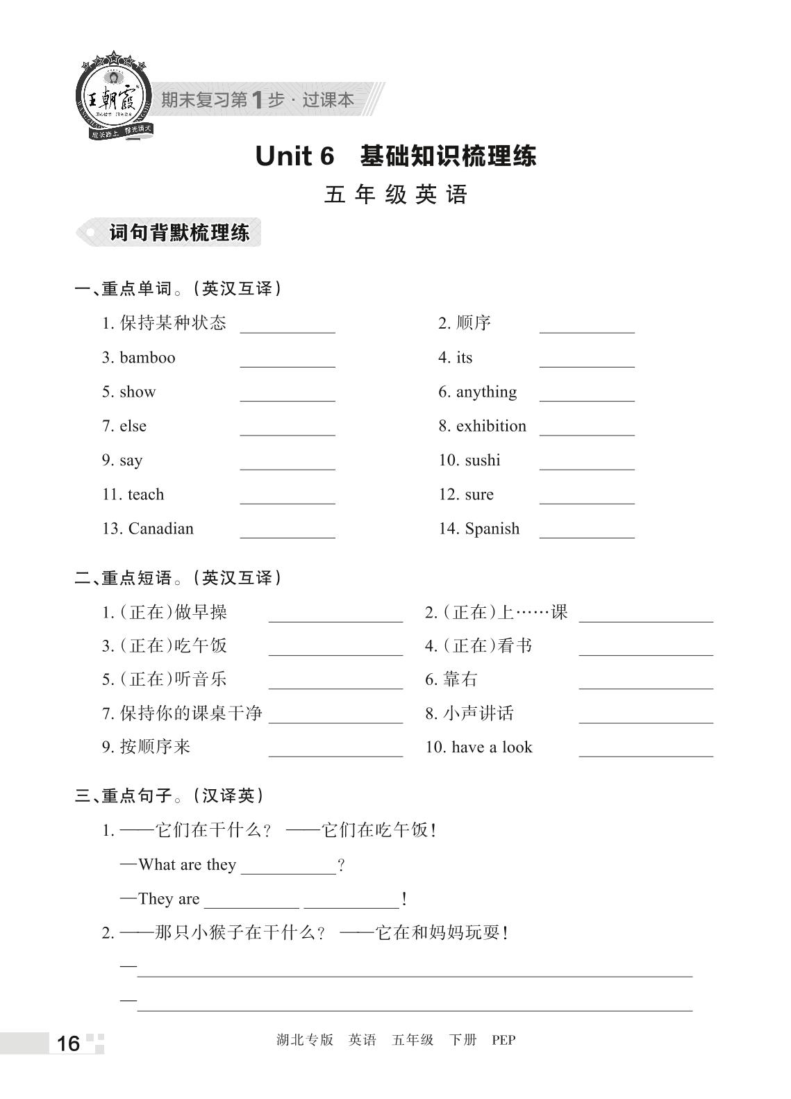 王朝霞期末过课本——Unit 6 基础知识梳理练五年级下册英语(PEP版)_R220328173211269