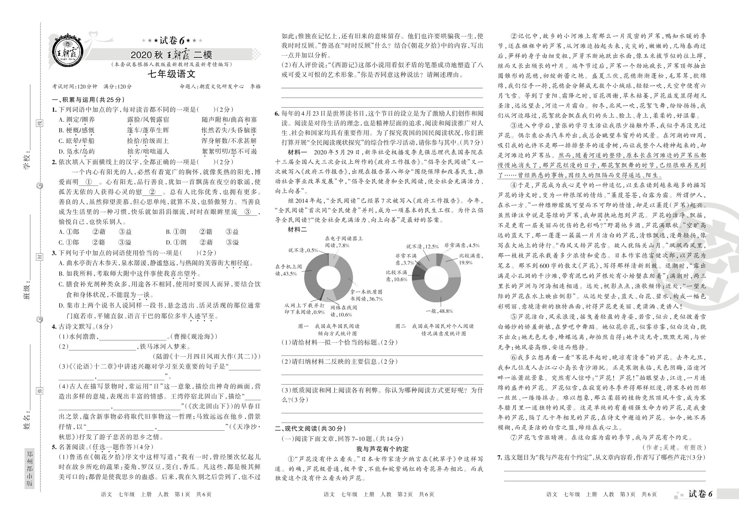 王朝霞期末模拟卷七年级上册语文(人教版)_R21080214315【6】