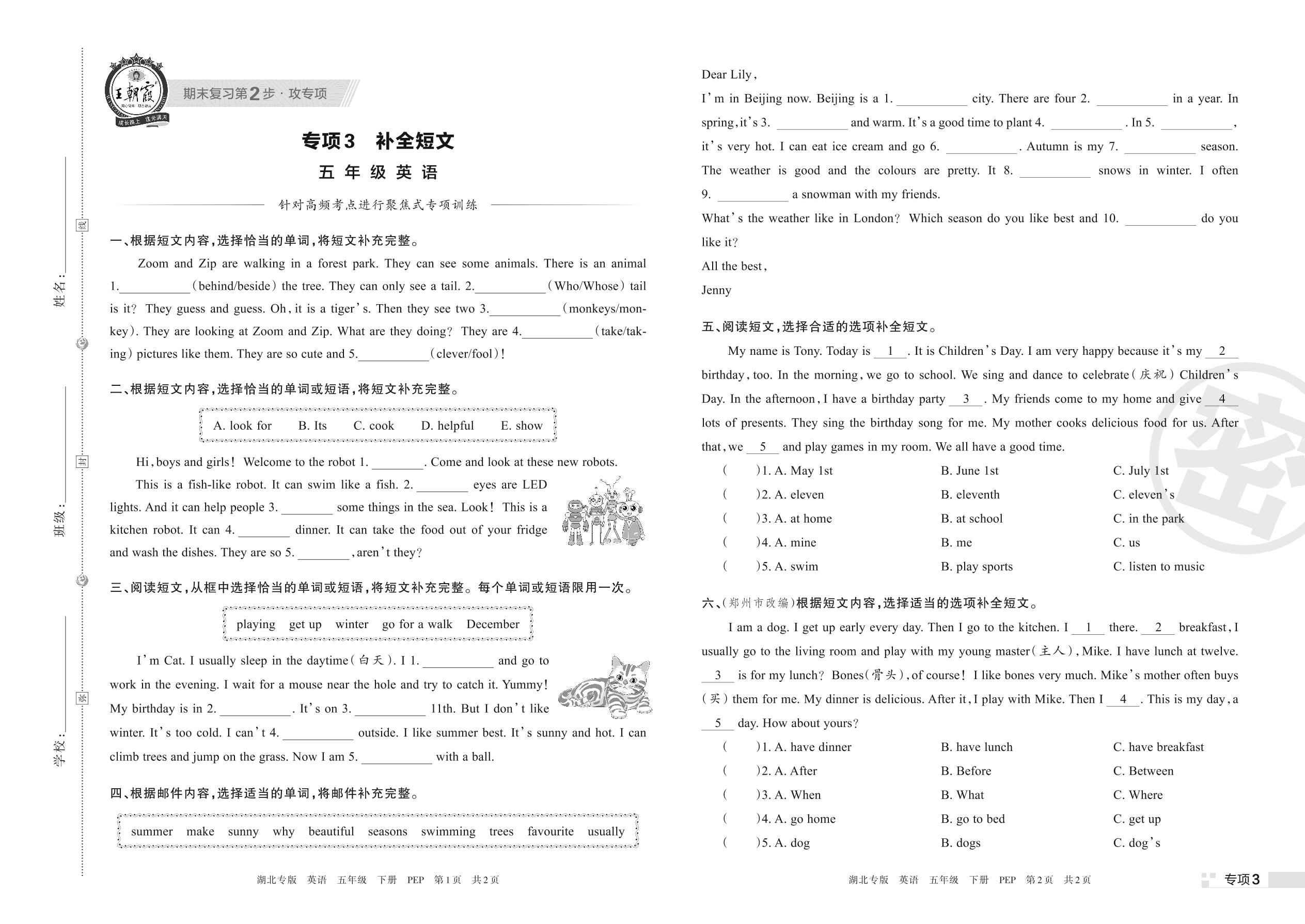 王朝霞期末专项卷——补全短文五年级下册英语(PEP版)_R220328173213588【3】