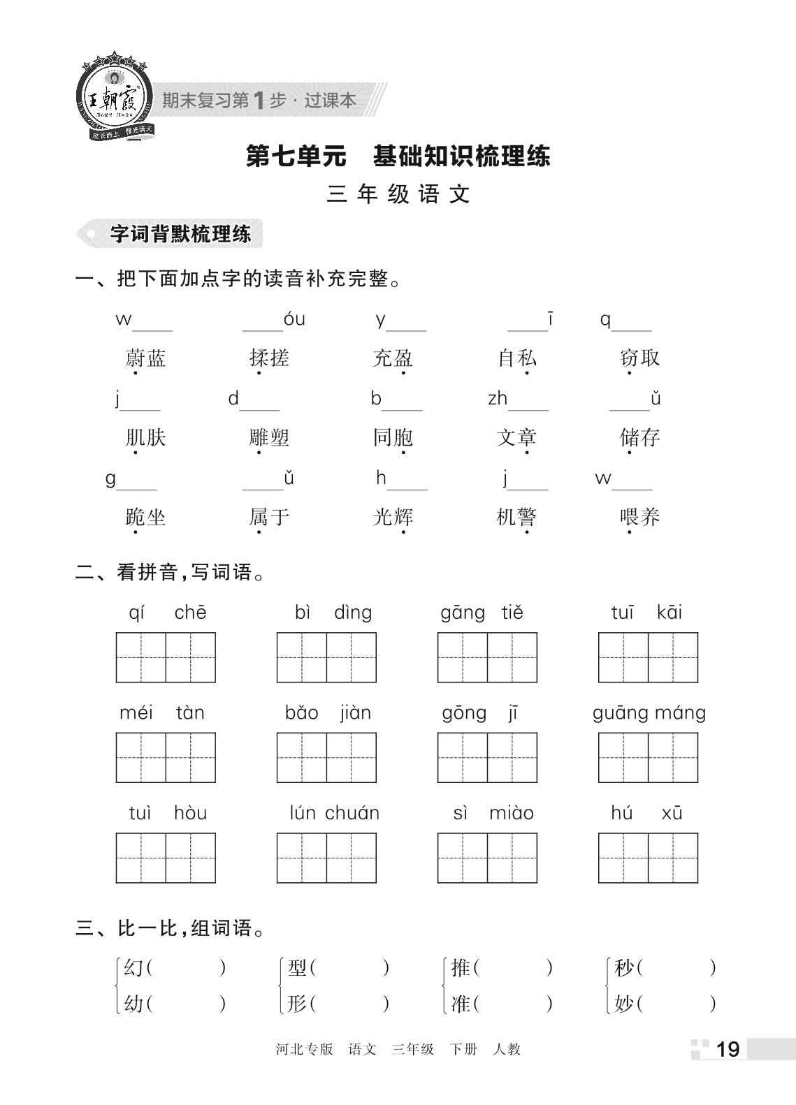王朝霞期末过课本——第七单元 基础知识梳理练三年级下册语文(人教版)_R220329091757886