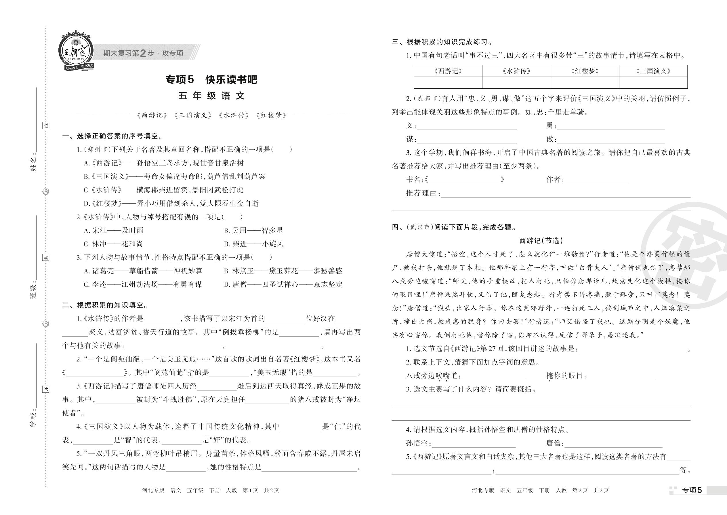王朝霞期末专项卷——快乐读书吧五年级下册语文(人教版)_R220329092951383【5】