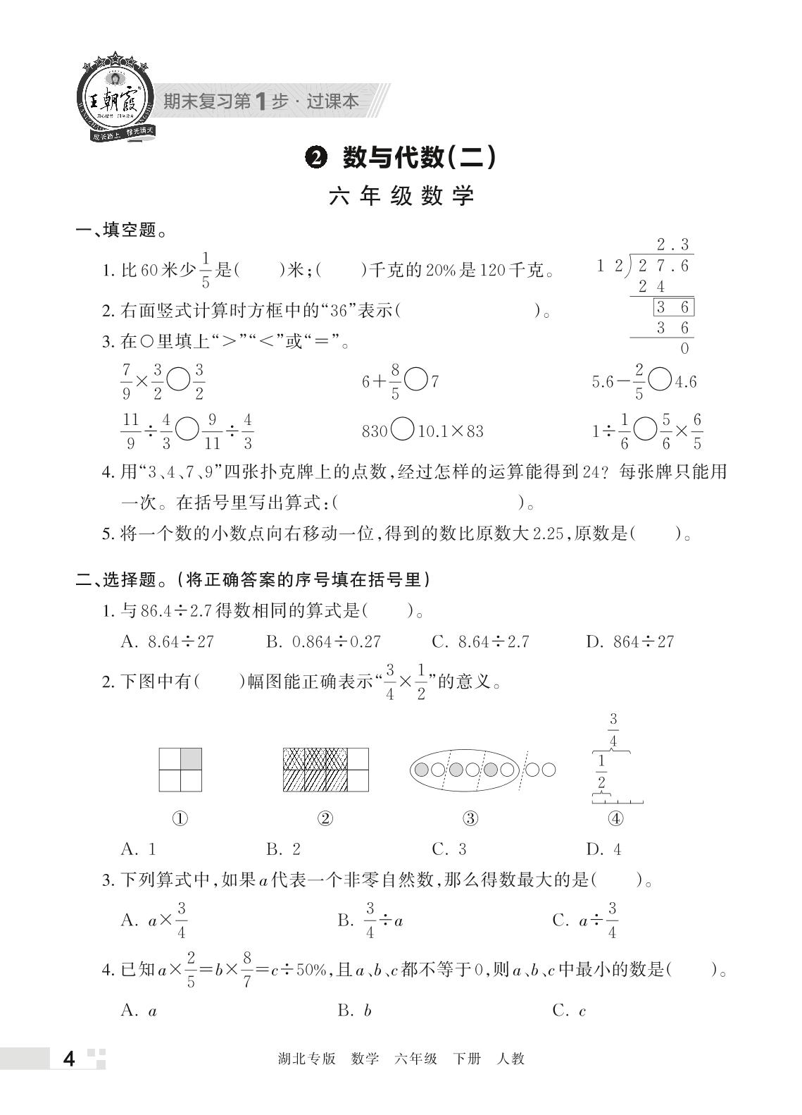 王朝霞期末过课本——2 数与代数(二)六年级下册数学(人教版)_R220329093442560