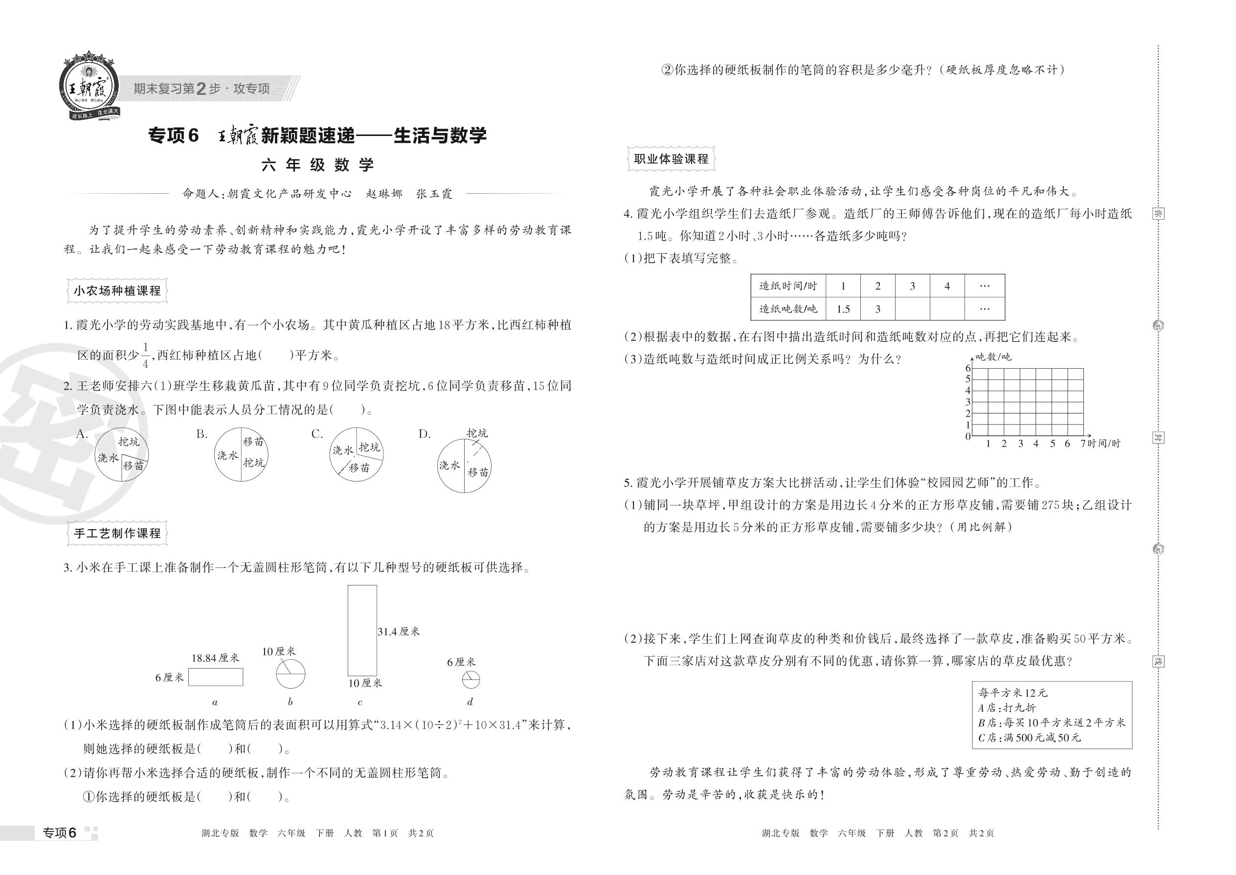 王朝霞期末专项卷——新颖题速递:生活与数学六年级下册数学(人教版)_R220329093443719【6】