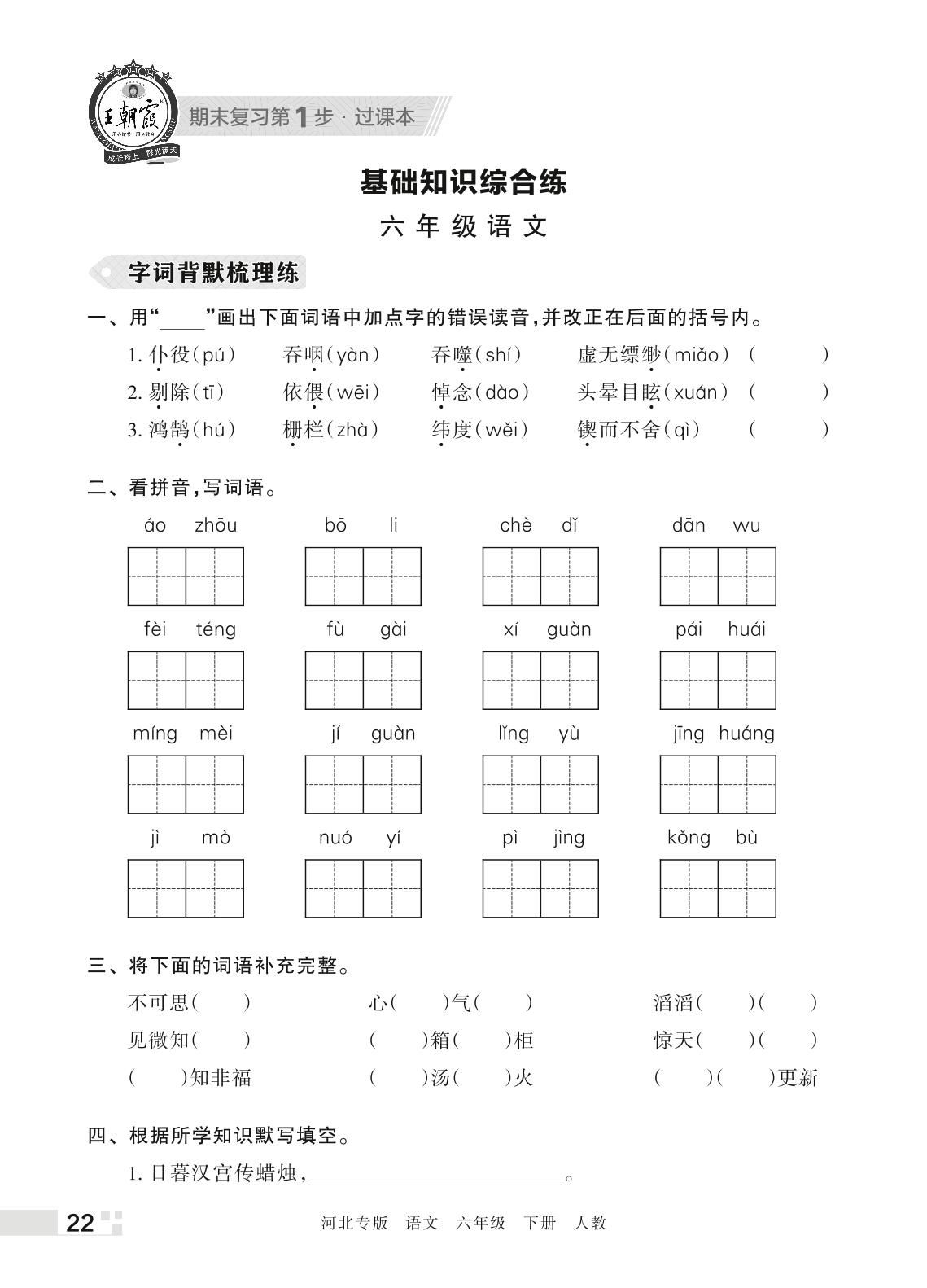 王朝霞期末过课本——基础知识综合练六年级下册语文(人教版)_R220329093538817