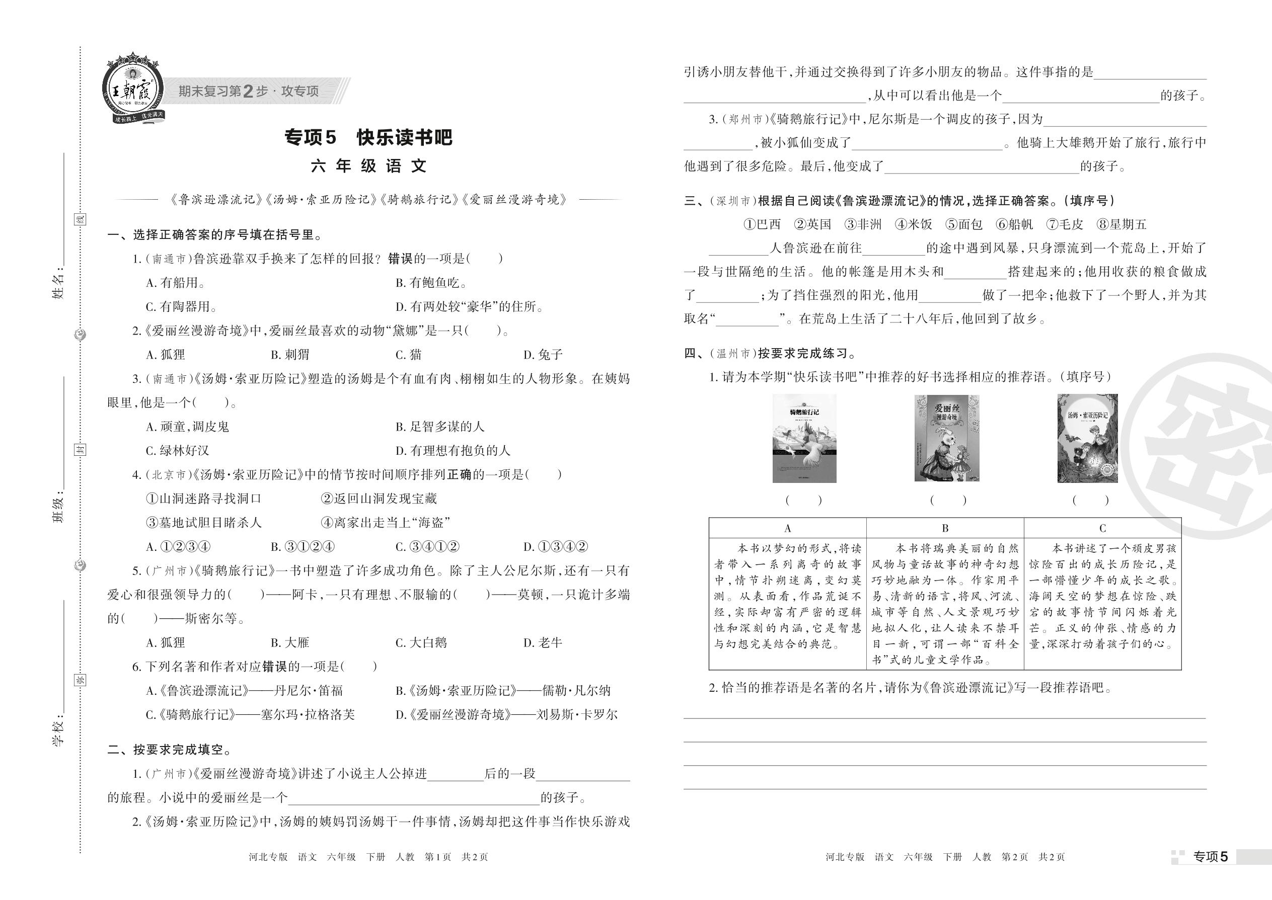 王朝霞期末专项卷——快乐读书吧六年级下册语文(人教版)_R220329093539508【5】
