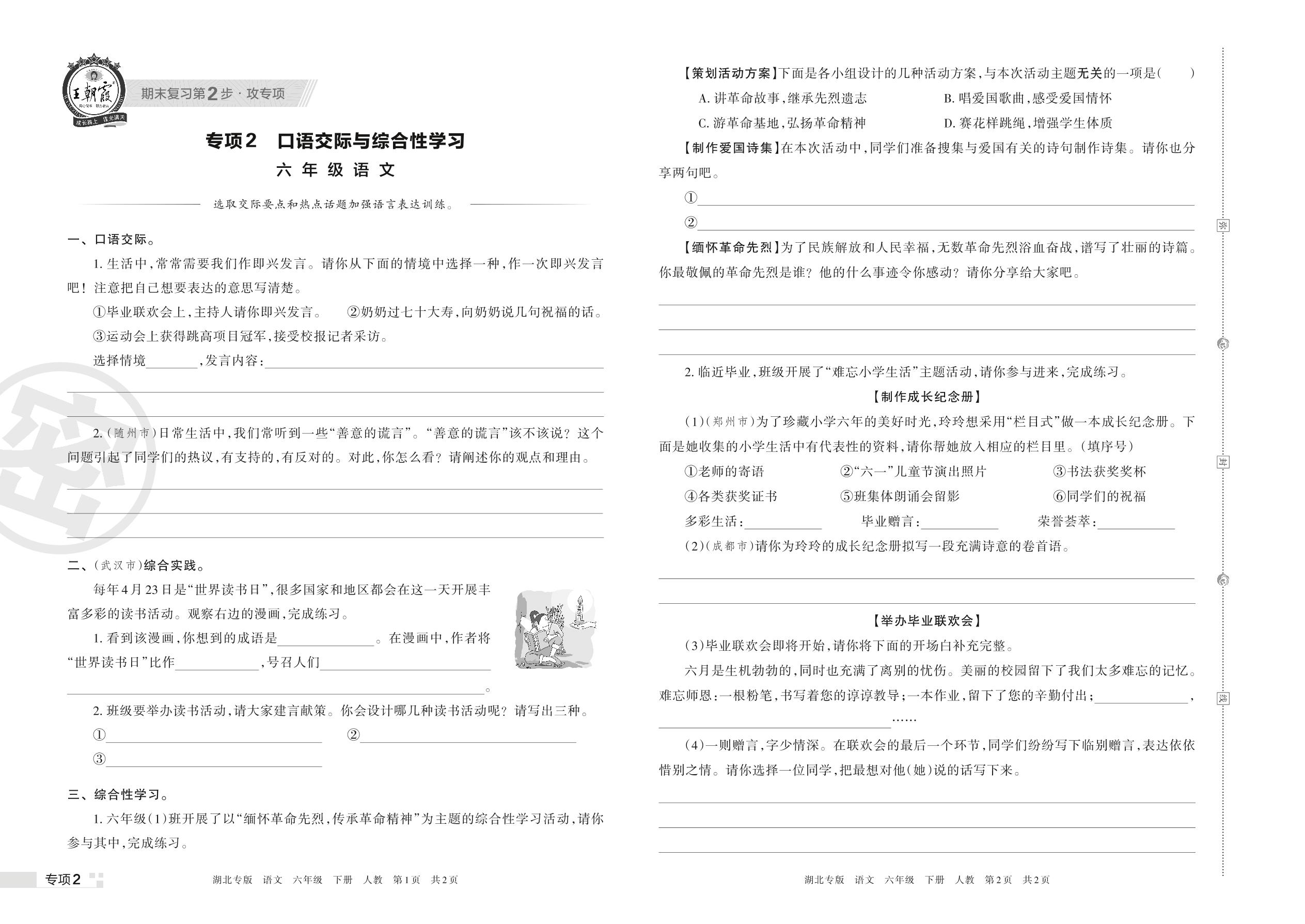 王朝霞期末专项卷——口语交际与综合性学习六年级下册语文(人教版)_R220329105615117【2】