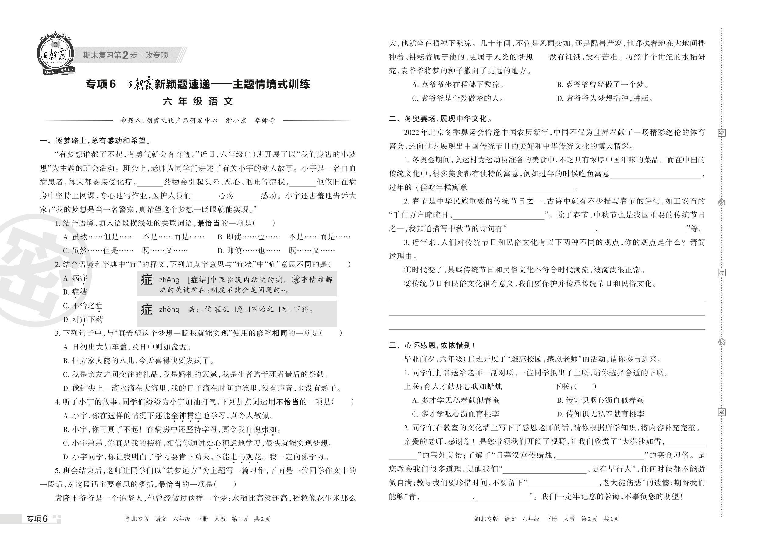 王朝霞期末专项卷——新颖题速递:主题情境式训练六年级下册语文(人教版)_R220329105615741【6】