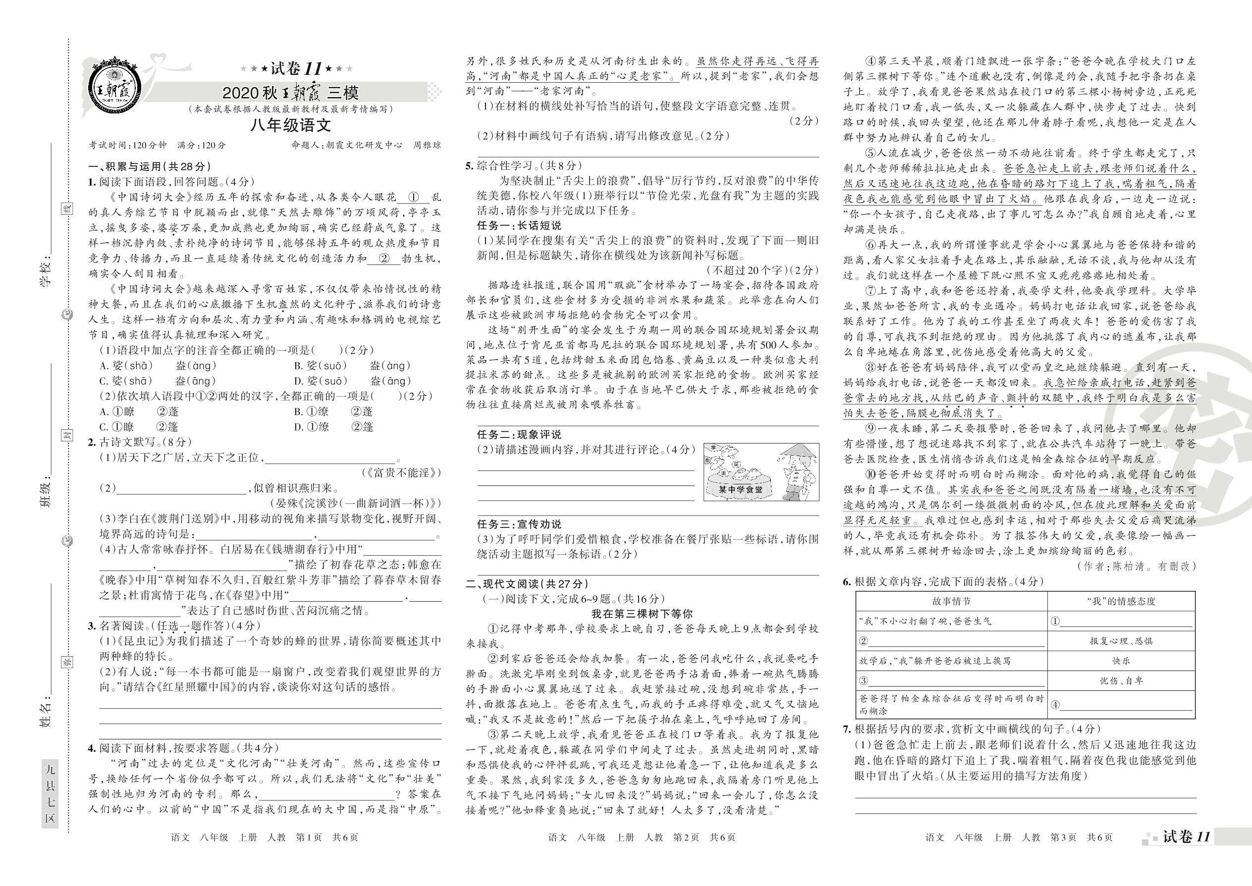 王朝霞期末模拟卷八年级上册语文(人教版)【11】