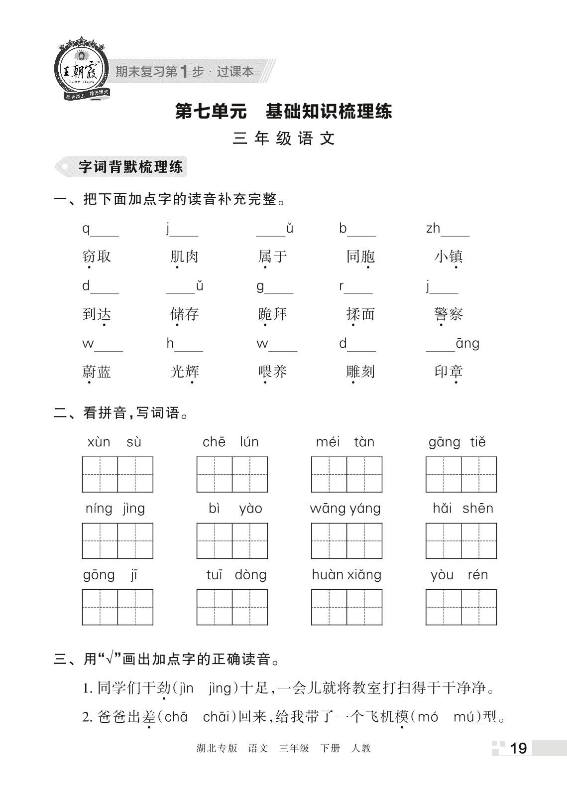 王朝霞期末过课本——第七单元 基础知识梳理练三年级下册语文(人教版)_R220329114715835