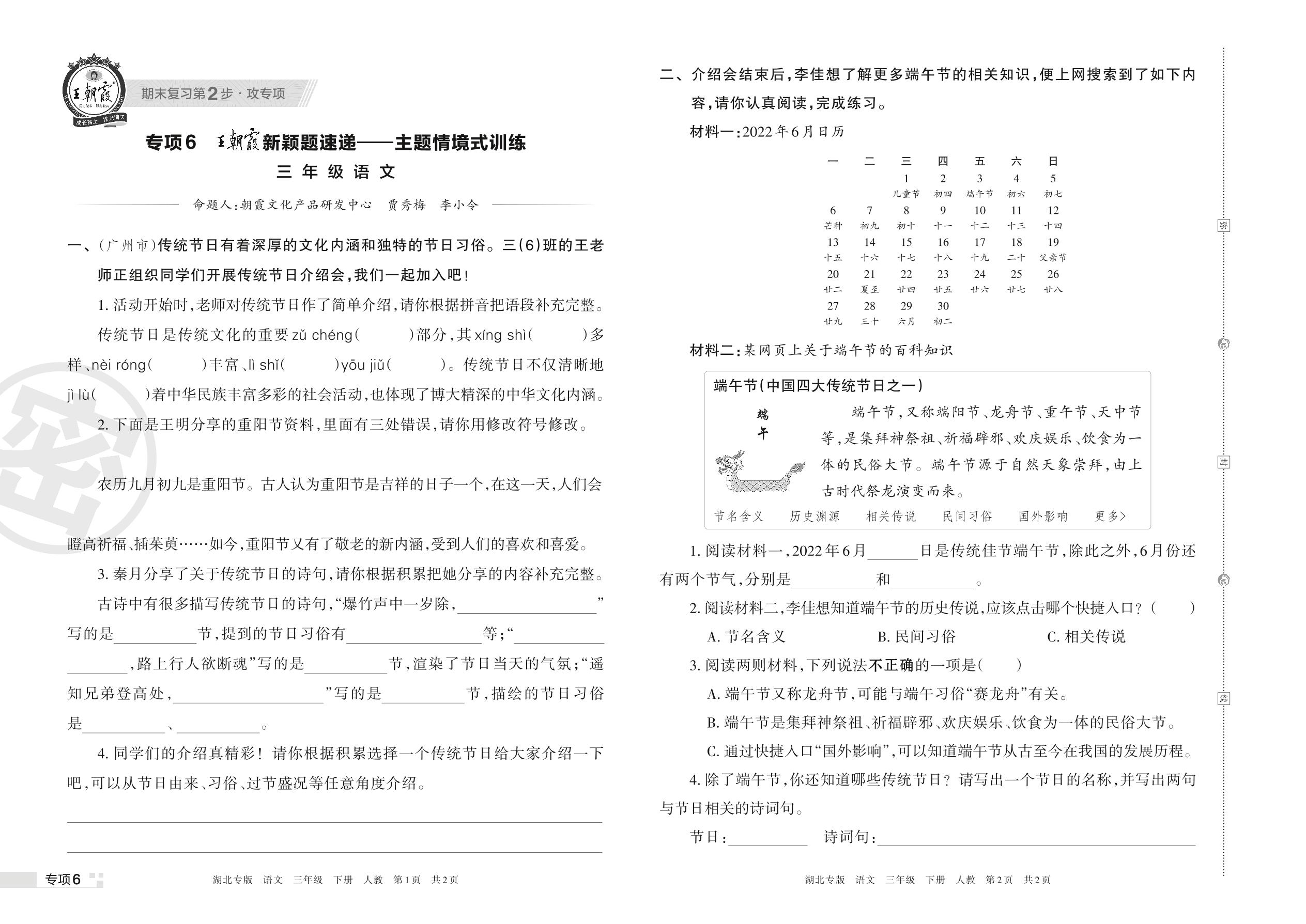 王朝霞期末专项卷——新颖题速递:主题情境式训练三年级下册语文(人教版)_R220329114716413【6】