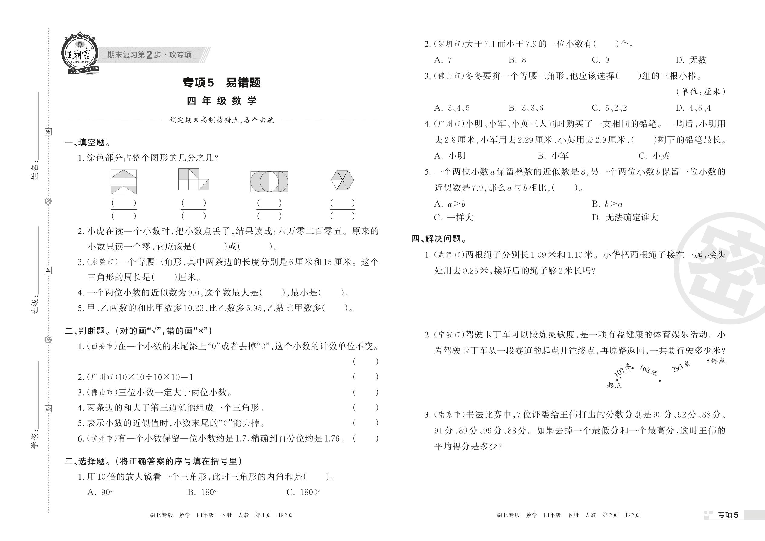 王朝霞期末专项卷——易错题四年级下册数学(人教版)_R220329115643229【5】