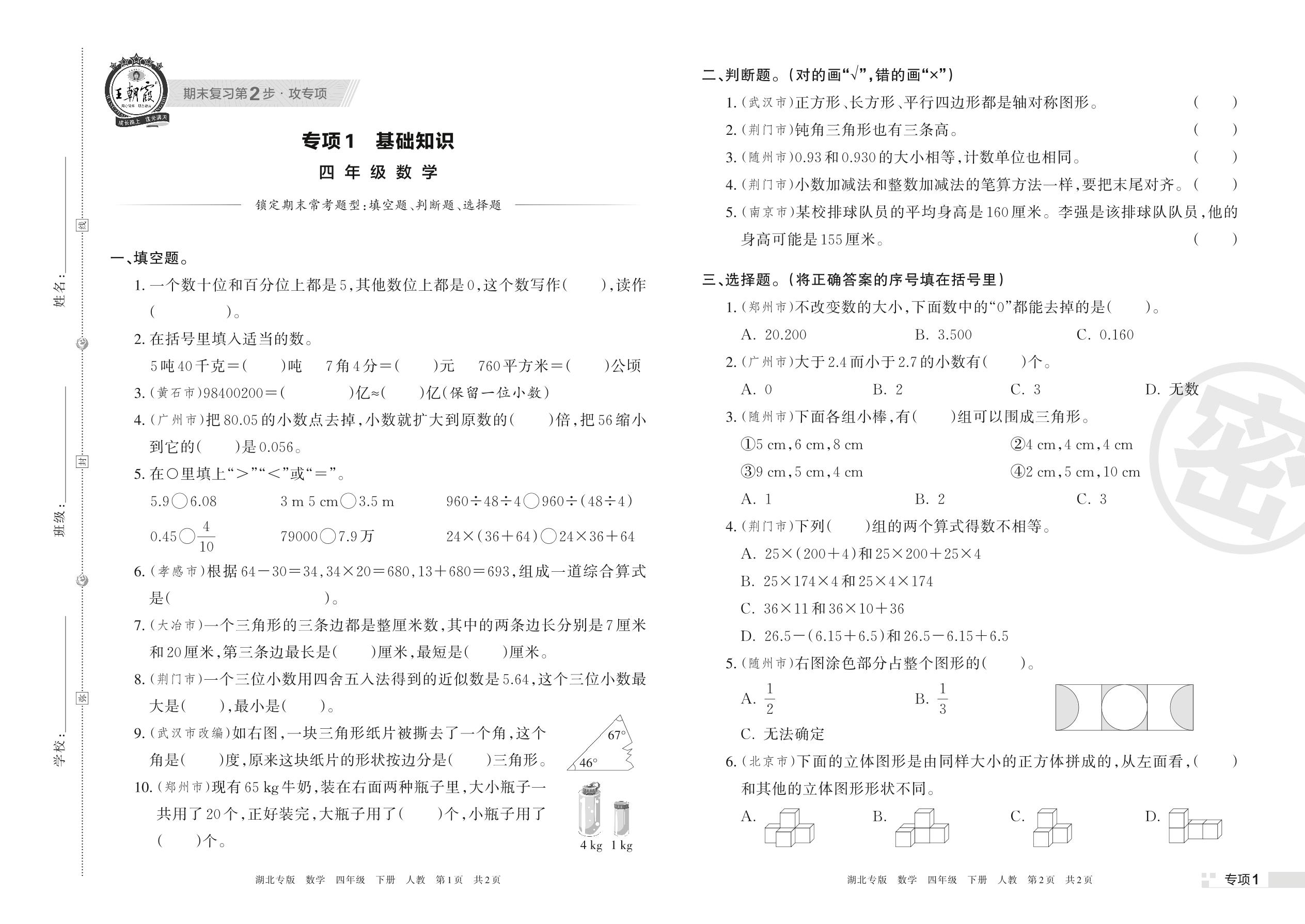 王朝霞期末专项卷——基础知识四年级下册数学(人教版)_R220329115643192【1】