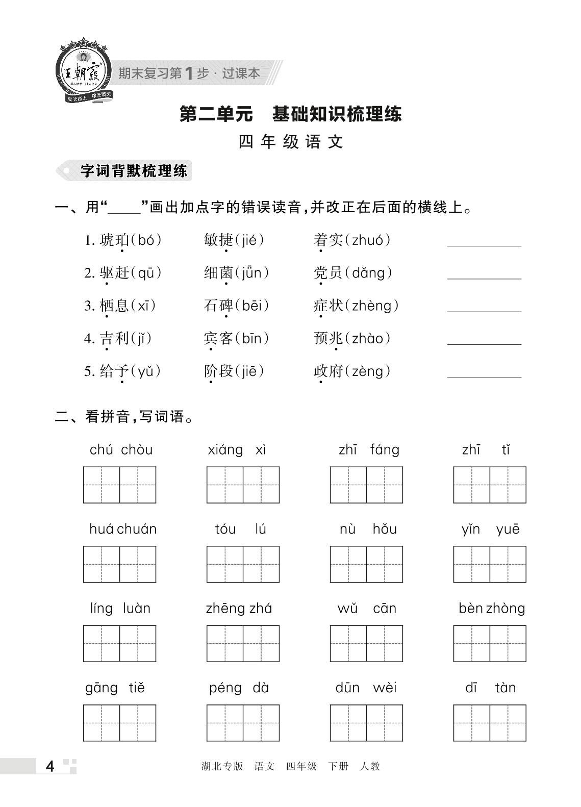 王朝霞期末过课本——第二单元 基础知识梳理练四年级下册语文(人教版)_R220329133819974