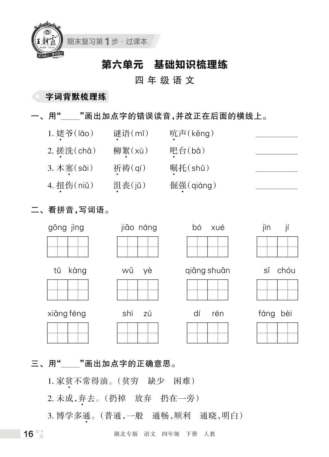王朝霞期末过课本——第六单元 基础知识梳理练四年级下册语文(人教版)_R220329133819029