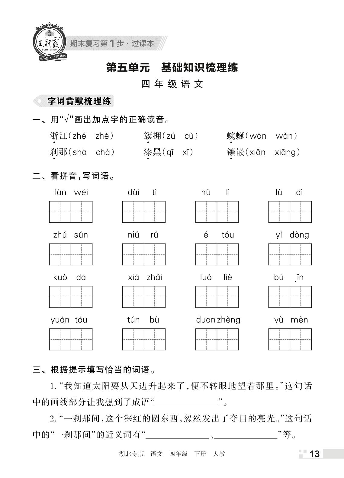 王朝霞期末过课本——第五单元 基础知识梳理练四年级下册语文(人教版)_R220329133819519