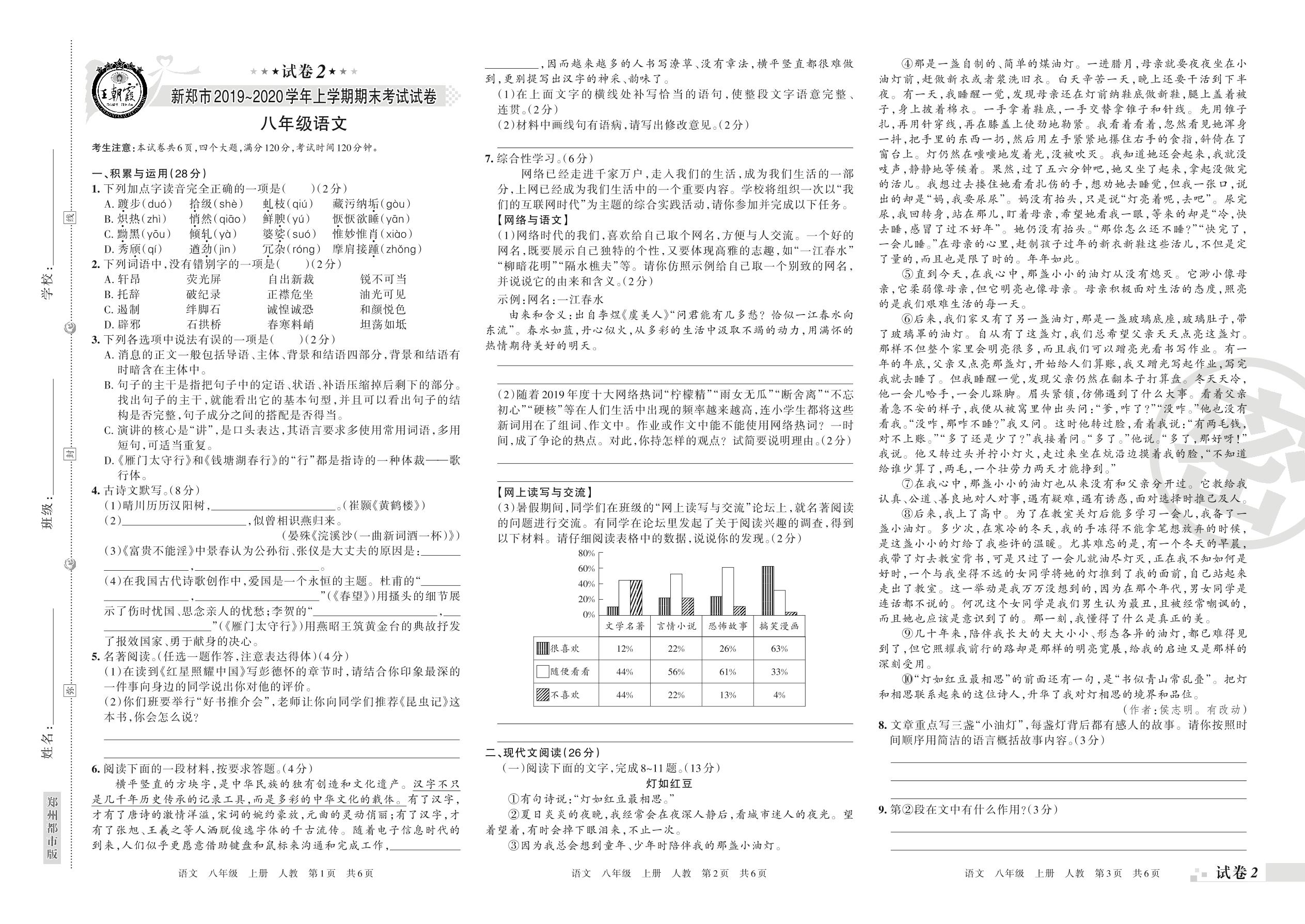 2019-2020学年第一学期新郑市八年级语文试卷(人教版)【2】