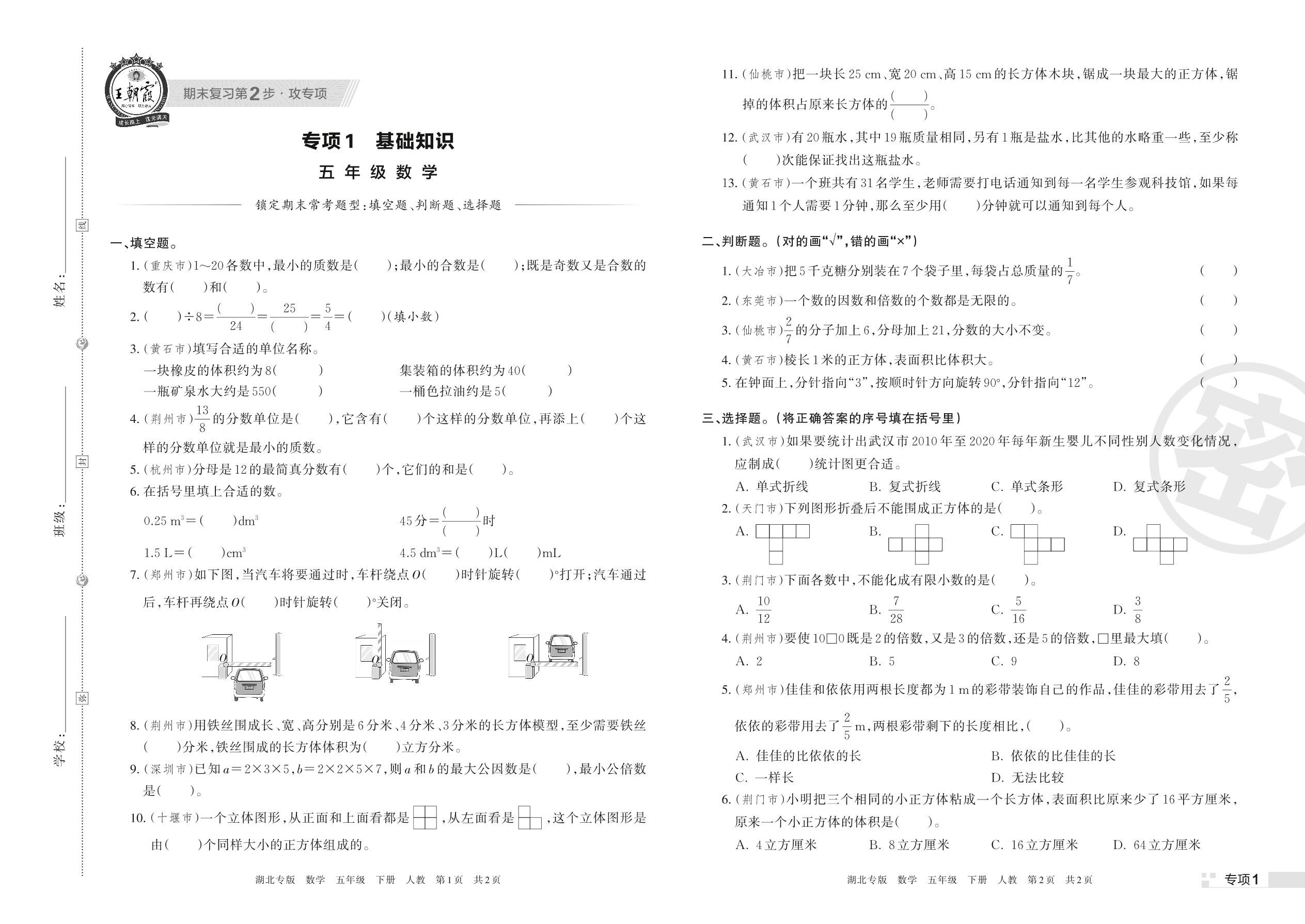 王朝霞期末专项卷——基础知识五年级下册数学(人教版)_R220329135128791【1】