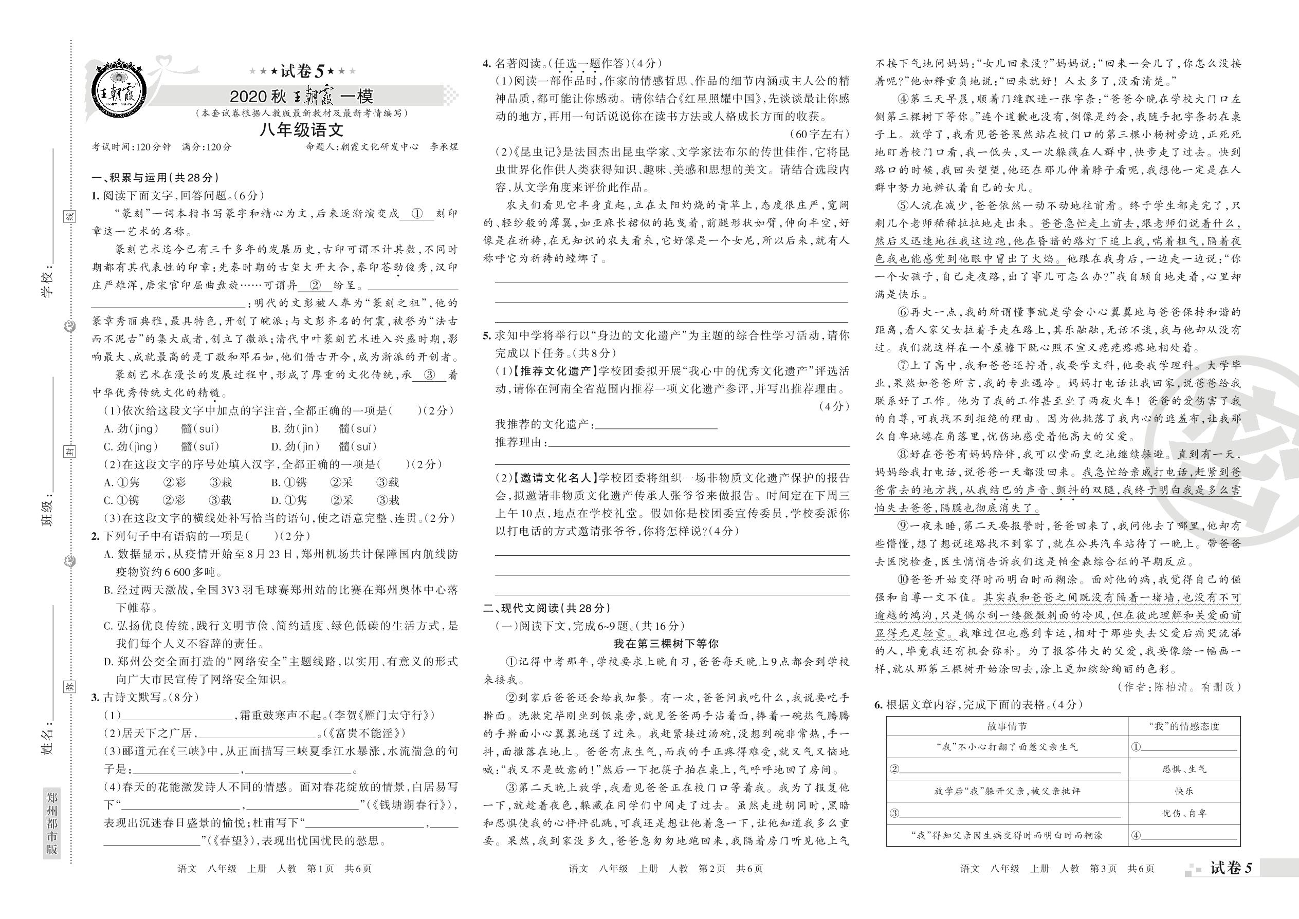 王朝霞期末模拟卷八年级上册语文(人教版)_R21080214757【5】