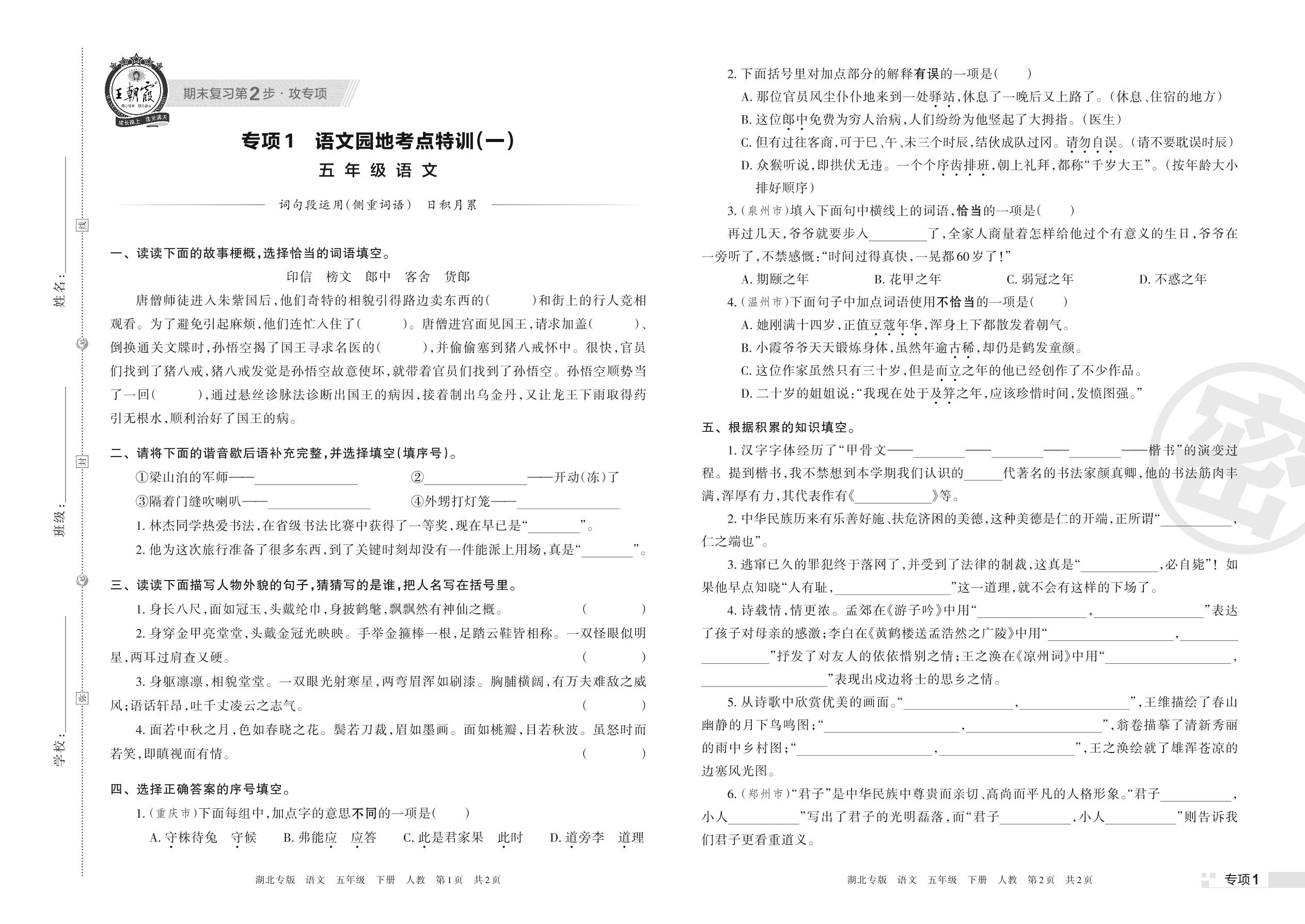 王朝霞期末专项卷——语文园地考点特训(一)五年级下册语文(人教版)_R220329140431014【1】