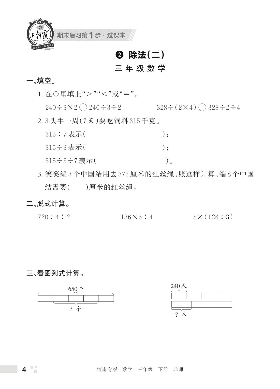 王朝霞期末过课本——2 除法(二)三年级下册数学(北师版)_R220329151458880