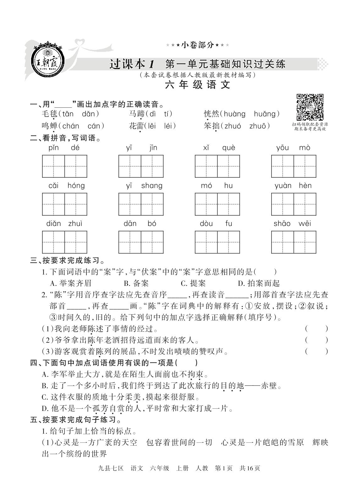 王朝霞期末过课本六年级上册语文(人教版)【0】