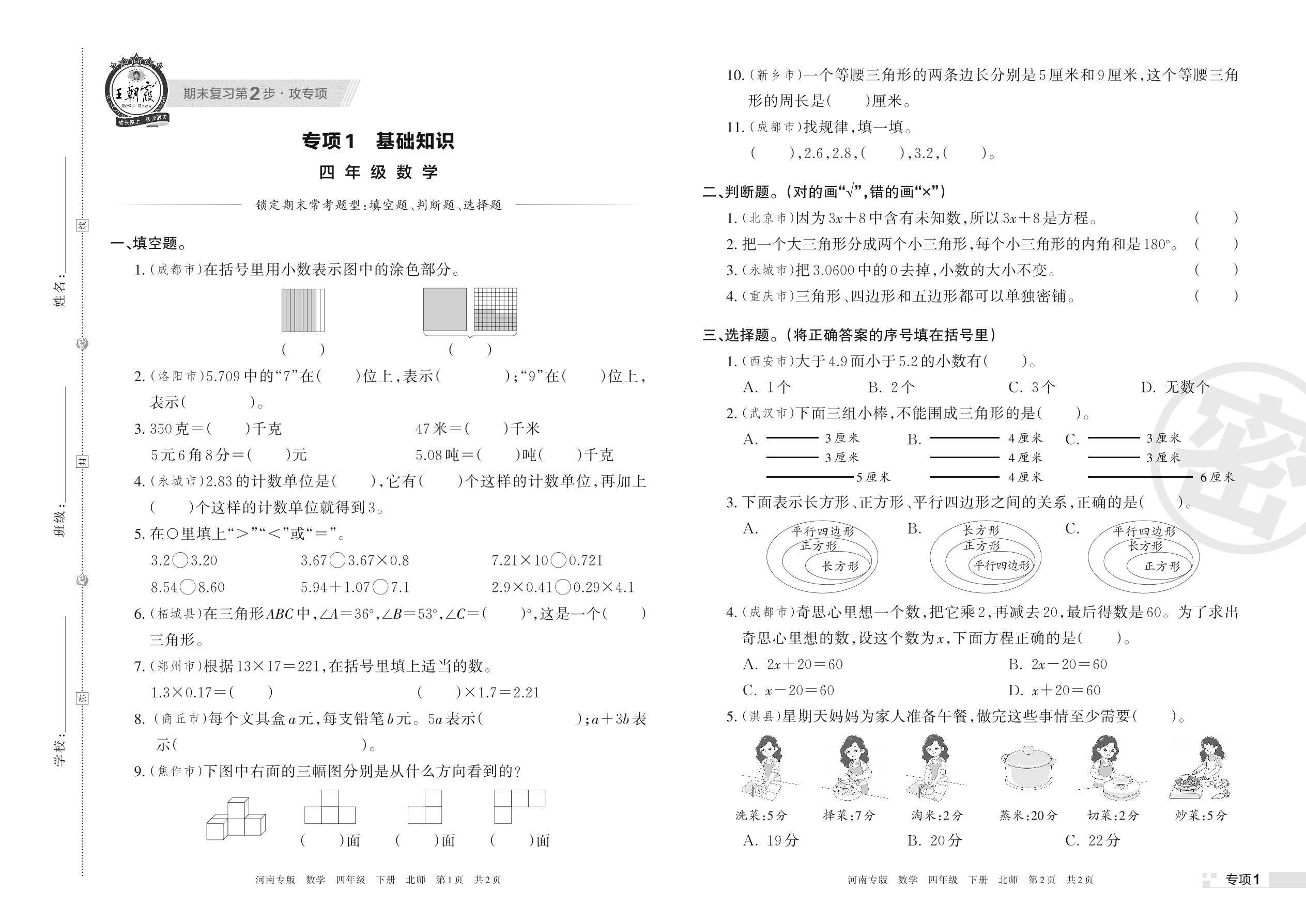 王朝霞期末专项卷——基础知识四年级下册数学(北师版)_R220329152239936【1】