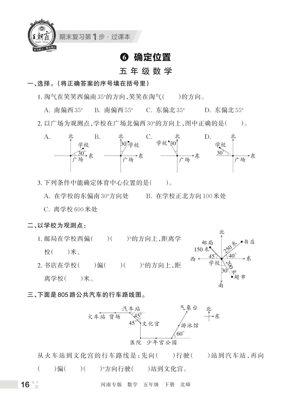 王朝霞期末过课本——6 确定位置五年级下册数学(北师版)_R220329153243126