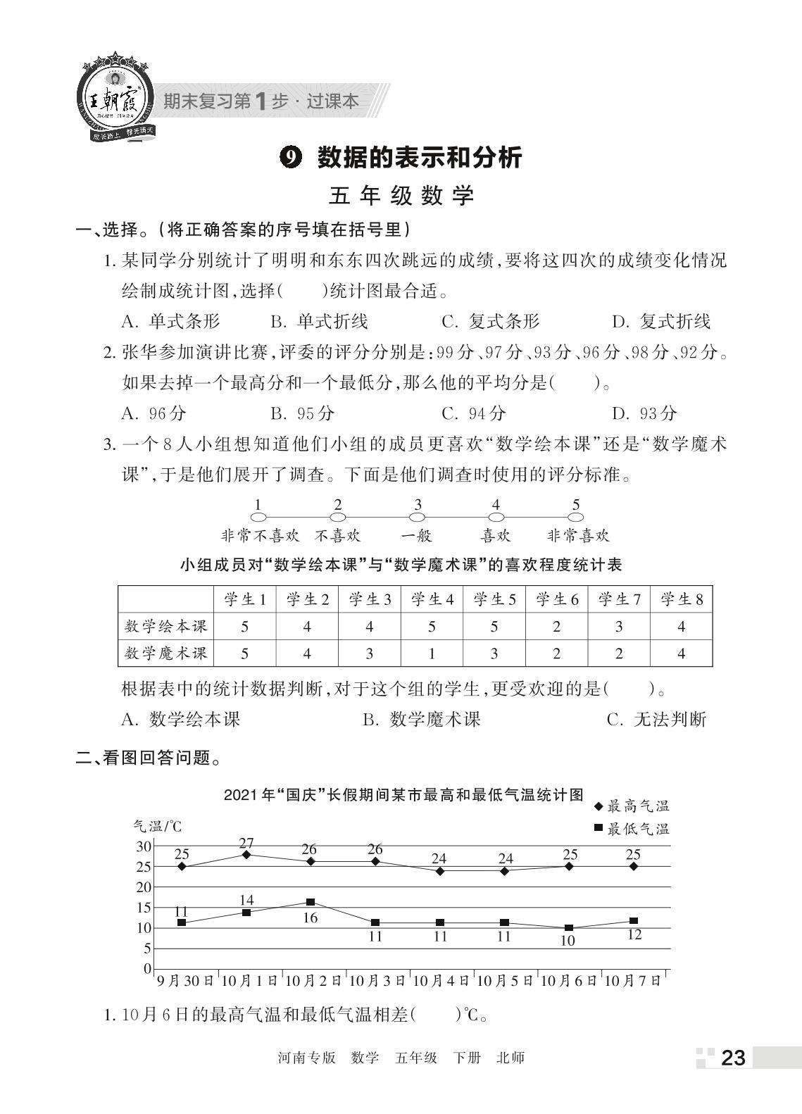 王朝霞期末过课本——9 数据的表示和分析五年级下册数学(北师版)_R220329153244397