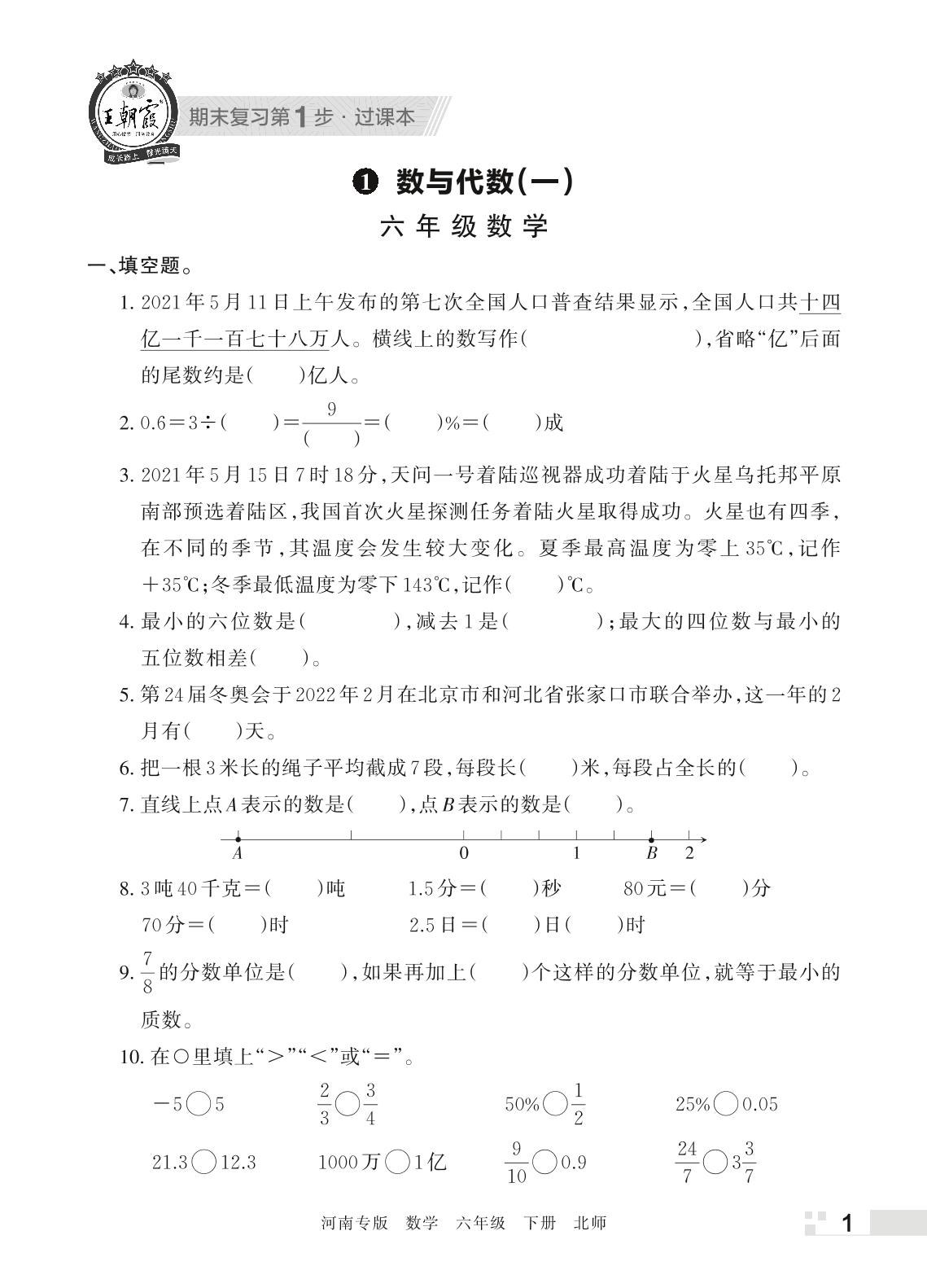 王朝霞期末过课本——1 数与代数(一)六年级下册数学(北师版)_R220329154019978