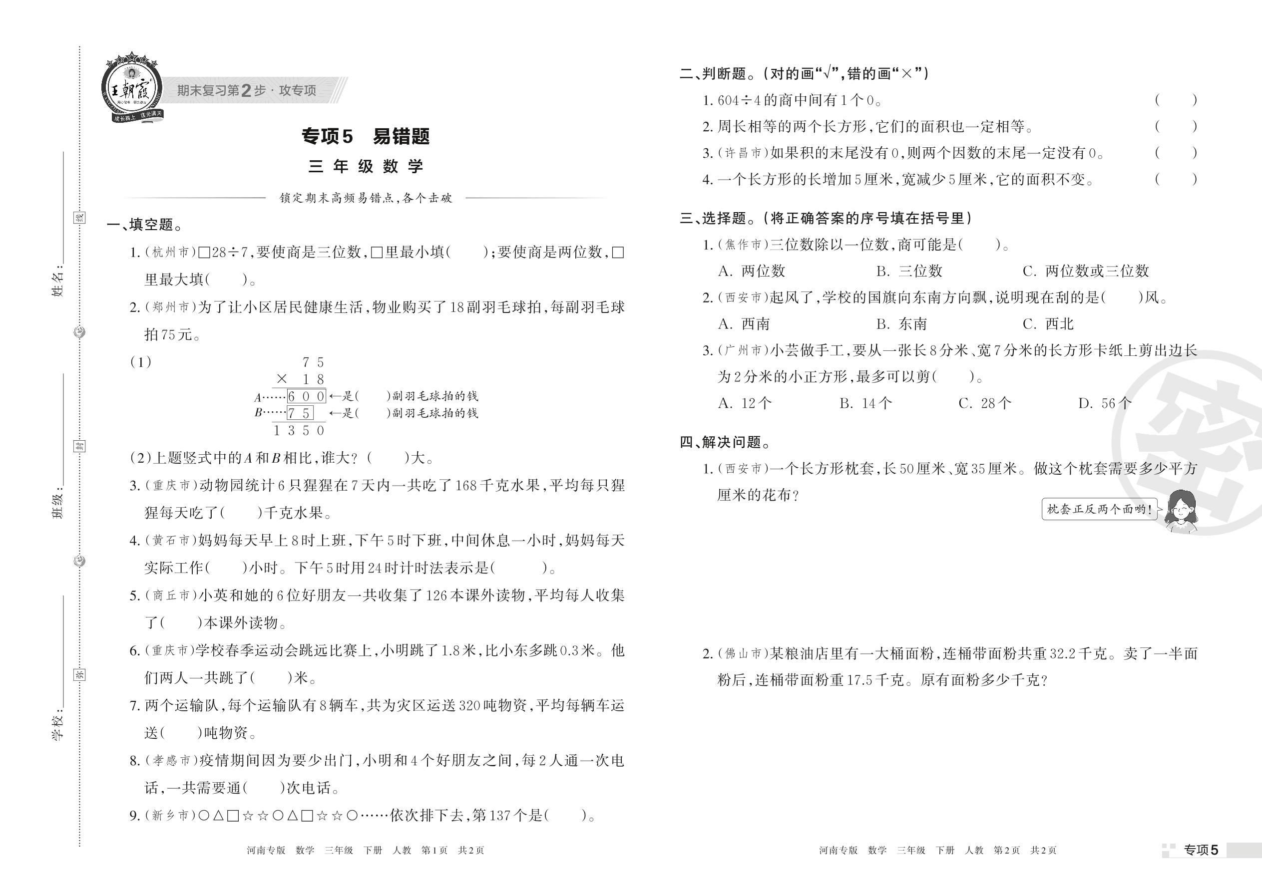 王朝霞期末专项卷——易错题三年级下册数学(人教版)_R220329160940849【5】