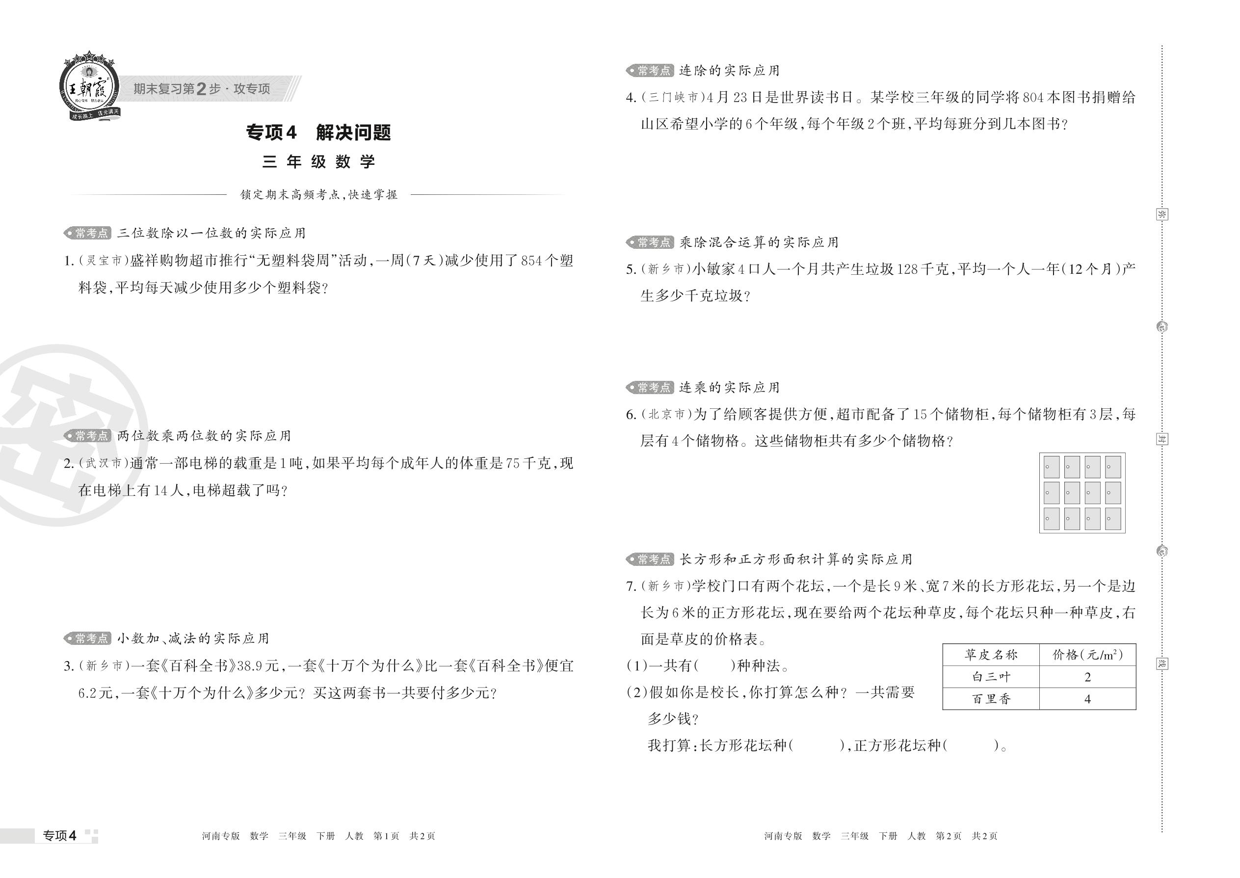 王朝霞期末专项卷——解决问题三年级下册数学(人教版)_R220329160940776【4】