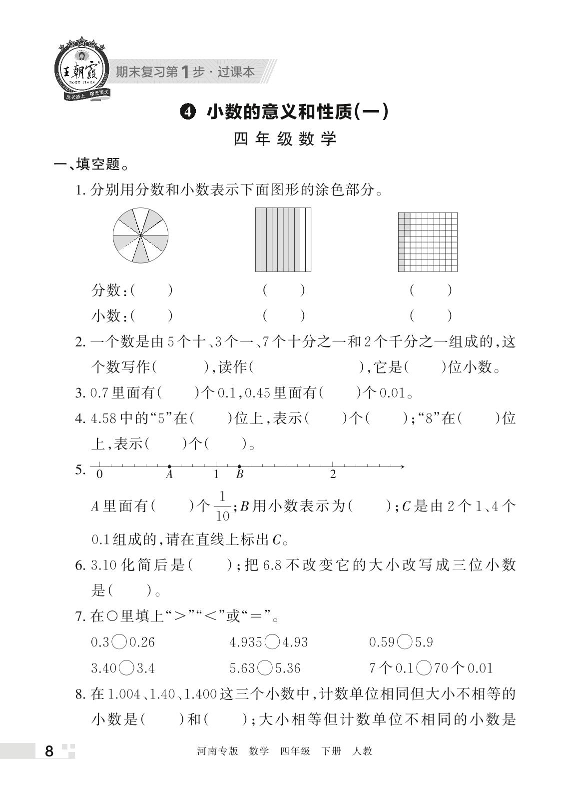 王朝霞期末过课本——4 小数的意义和性质(一)四年级下册数学(人教版)_R220329161647368