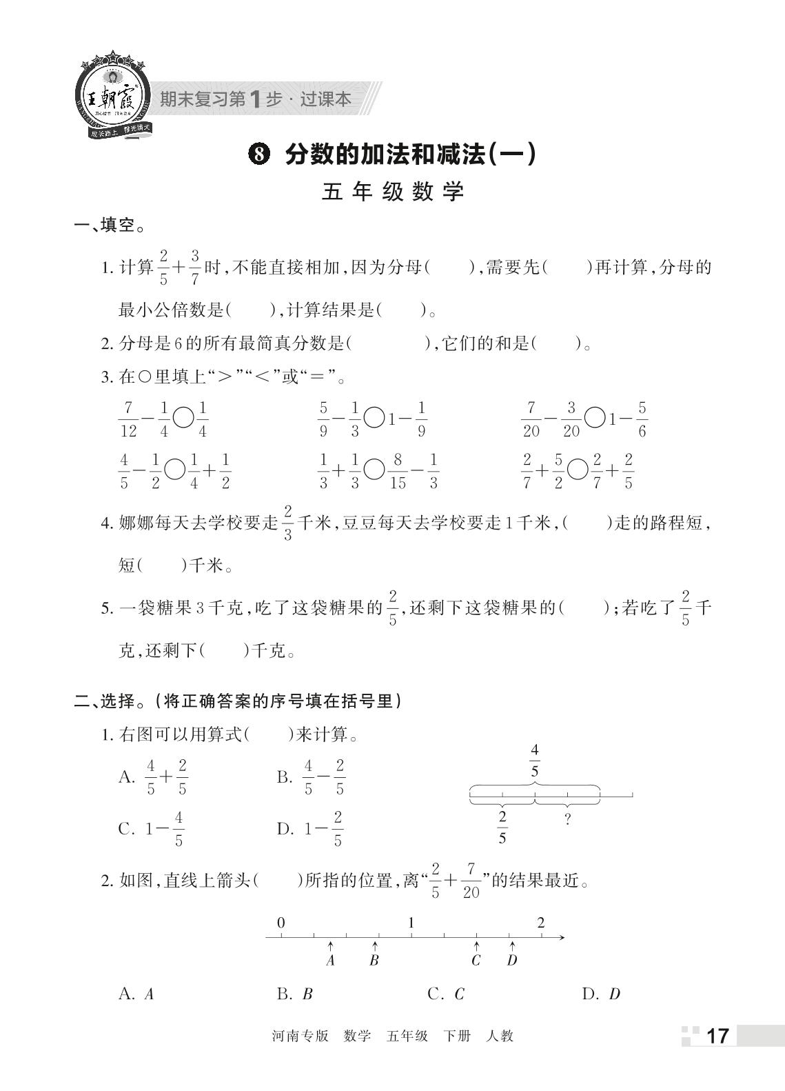 王朝霞期末过课本——8 分数的加法和减法(一)五年级下册数学(人教版)_R220329162418634