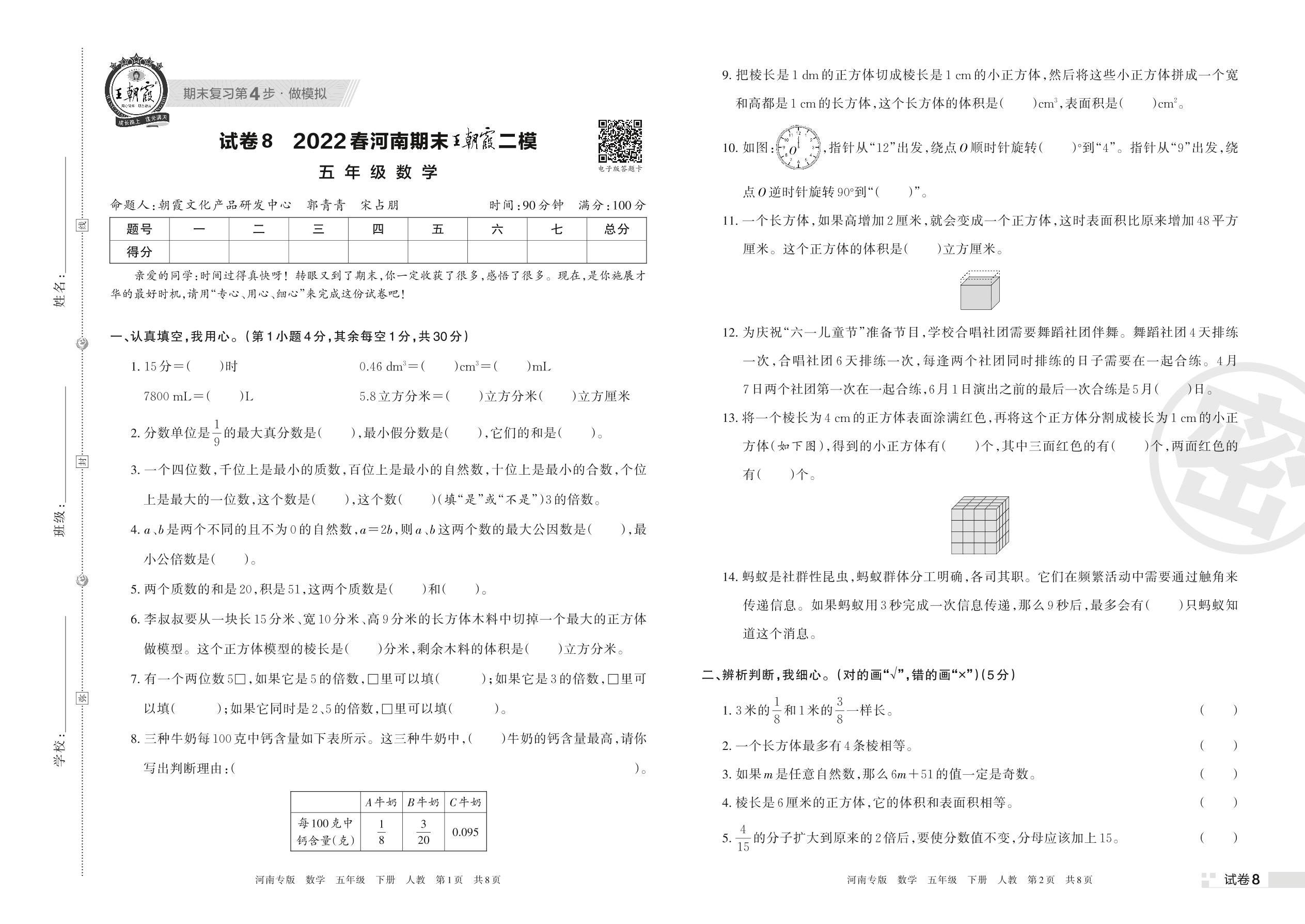 王朝霞期末模拟卷五年级下册数学(人教版)_R220329162420982【8】