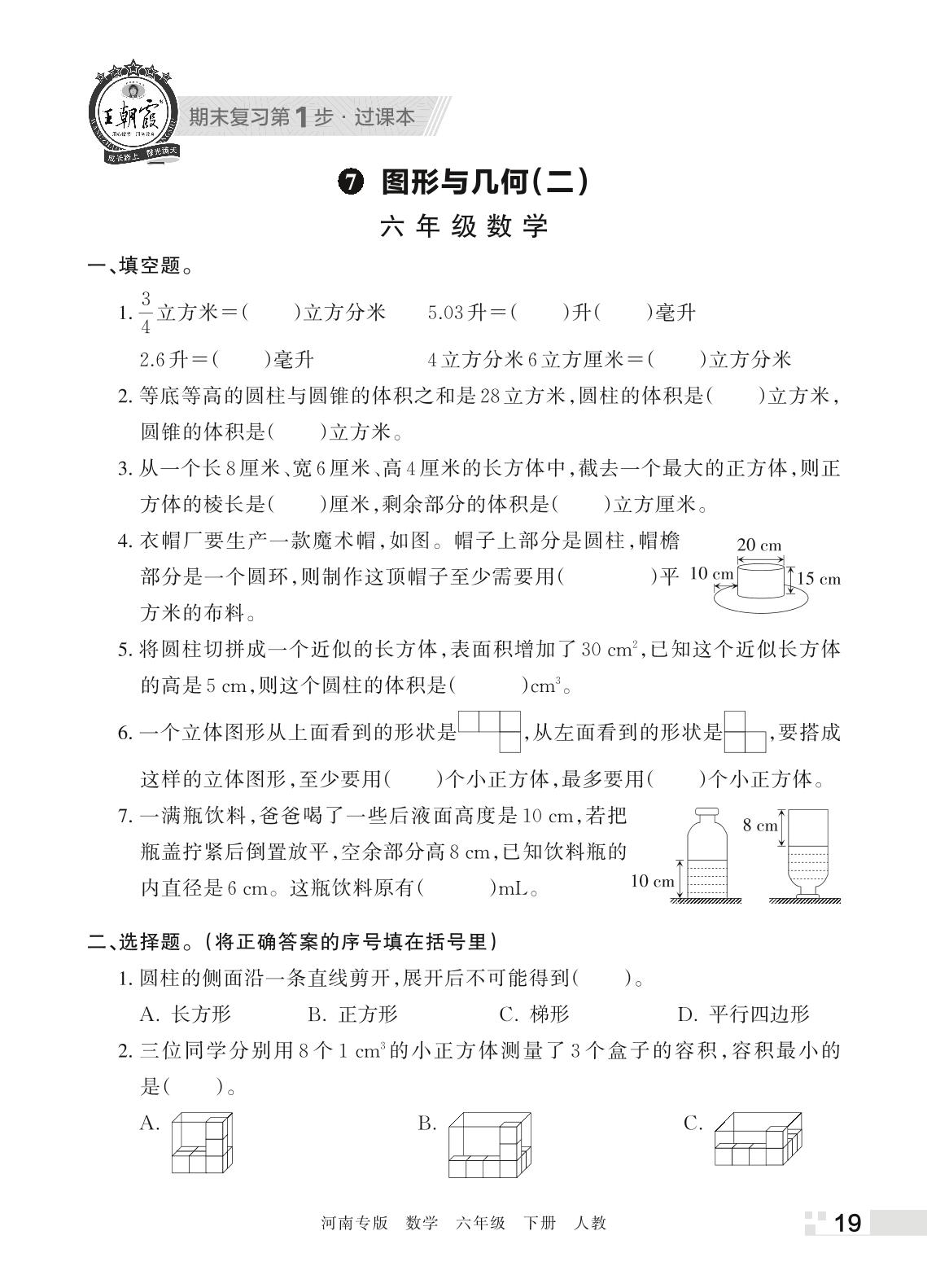 王朝霞期末过课本——7 图形与几何(二)六年级下册数学(人教版)_R220329163329677
